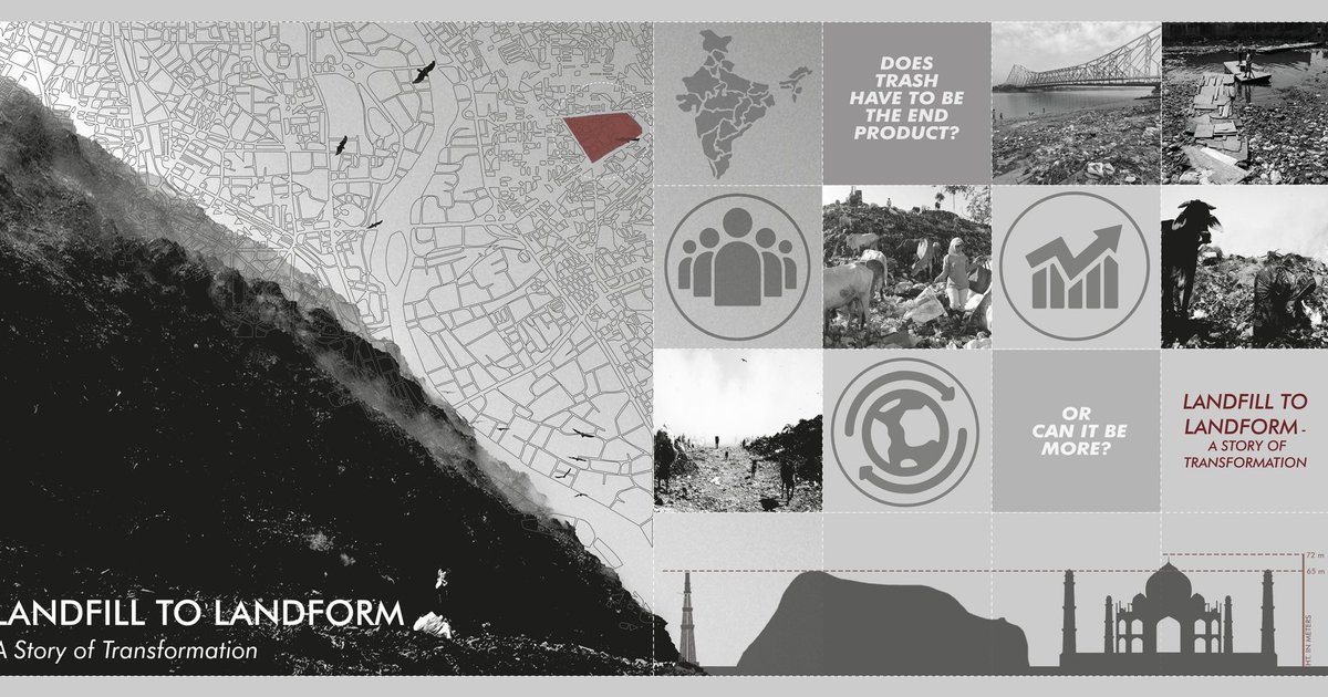 Landfill to Landform: A Story of Transformation proposes a bold vision rooted in sustainable urban regeneration—a strategy that not only caps and stabilizes waste, but converts the site into a thriving ecological, educational, and public landscape. Designed by Sanskriti Jindal, Manali Jamgaonkar, and Linda Elsa Baby, the project redefines how architecture and landscape can collaborate to heal damaged territories and create long-term urban value.