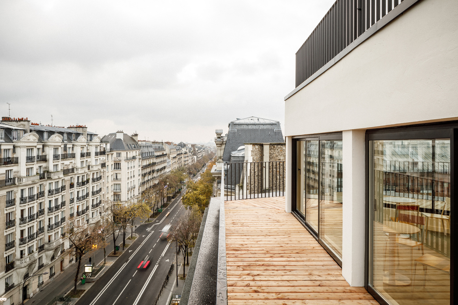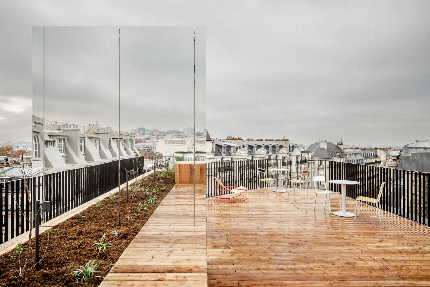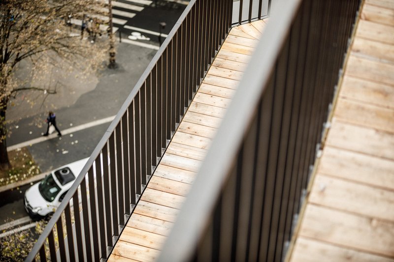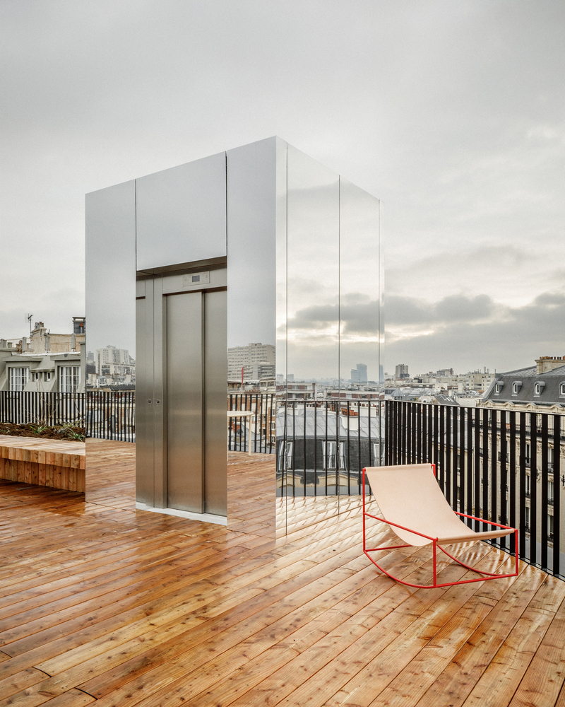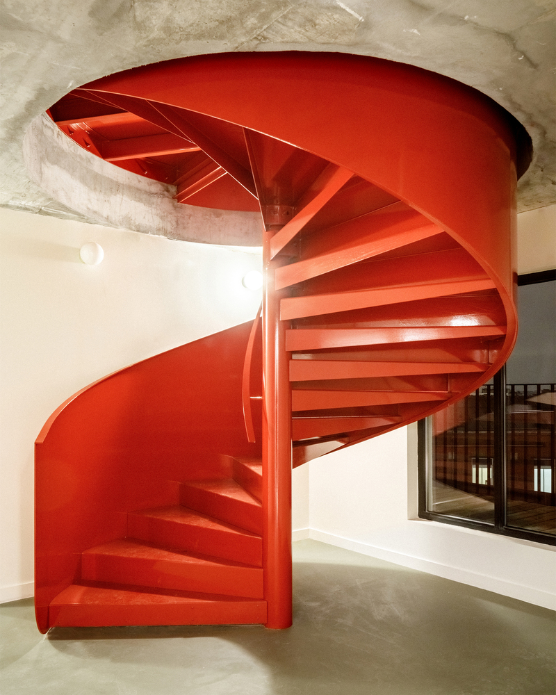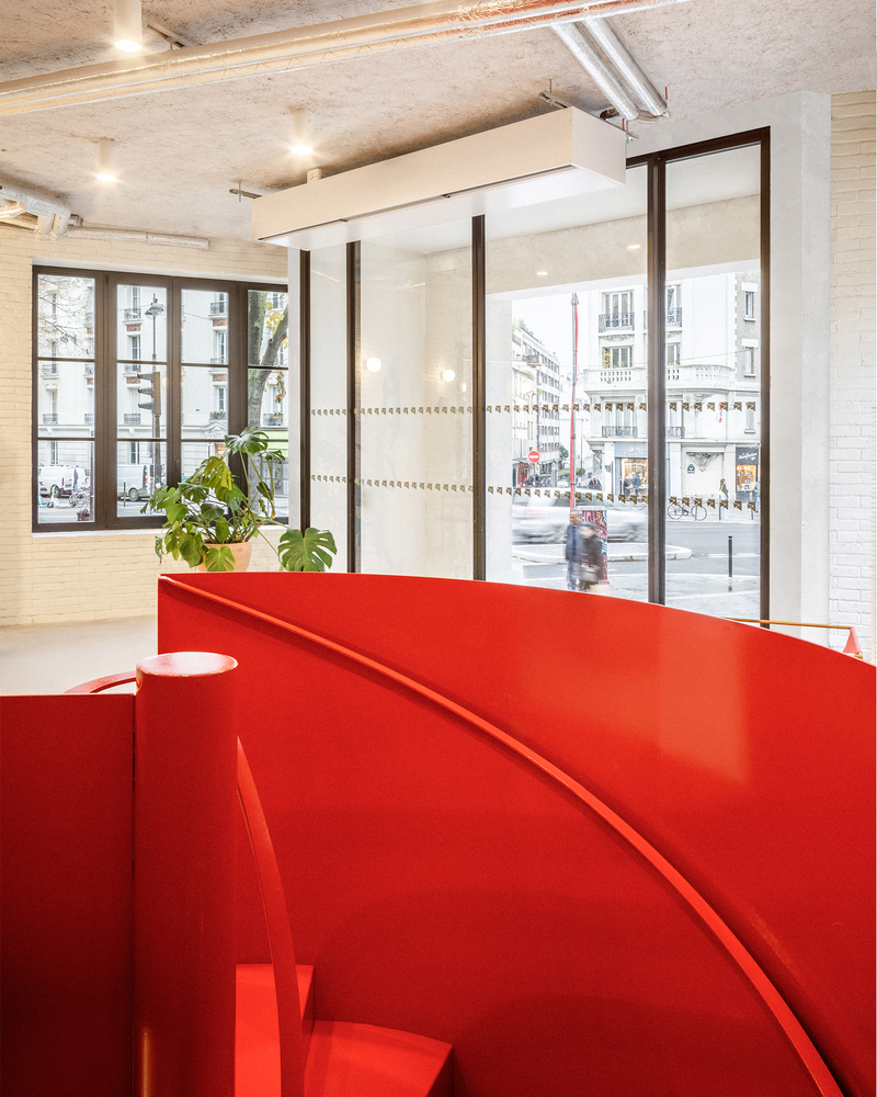 One of the standout features of the renovation is the addition of two helical staircases. These metal staircases are both functional and aesthetic, offering easy access between floors while adding a touch of lightness and color to the space. Painted in a bold red hue, the staircases become a focal point within the school, drawing visitors and students alike to explore different areas of the building. Additionally, the panoramic terrace provides breathtaking views of Paris’ most iconic monuments, adding an element of allure to the project.