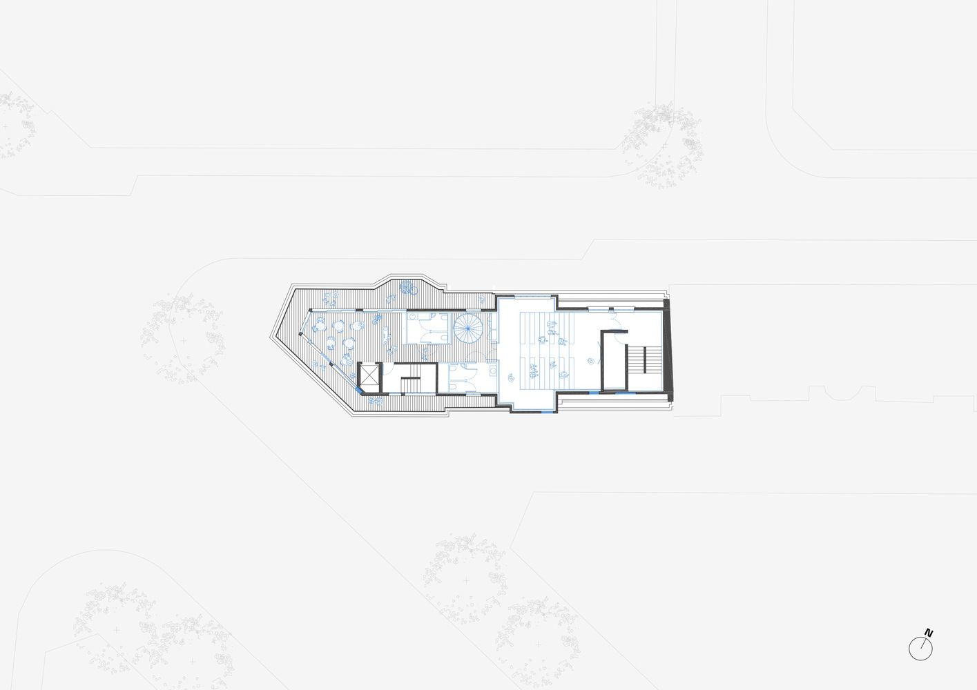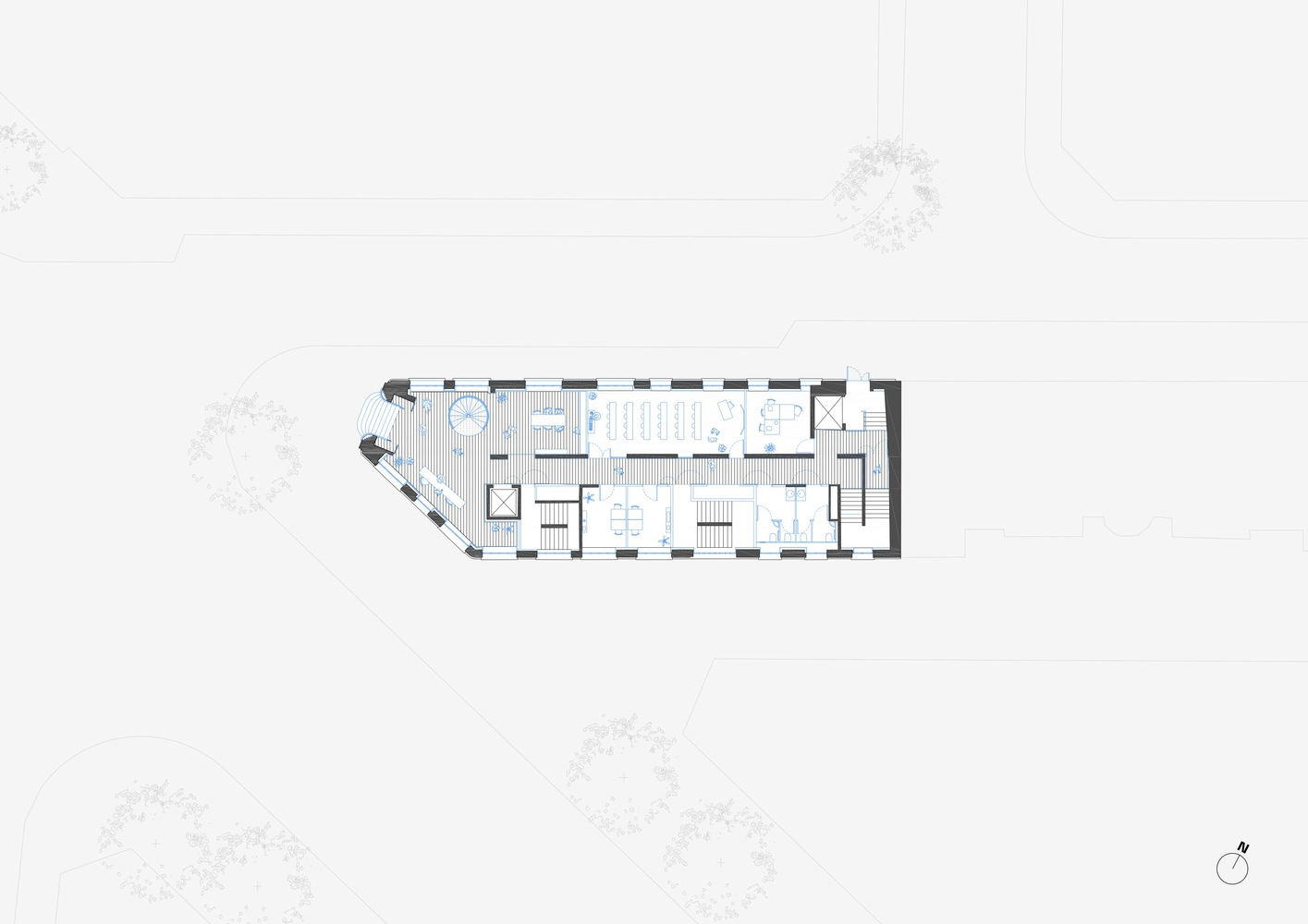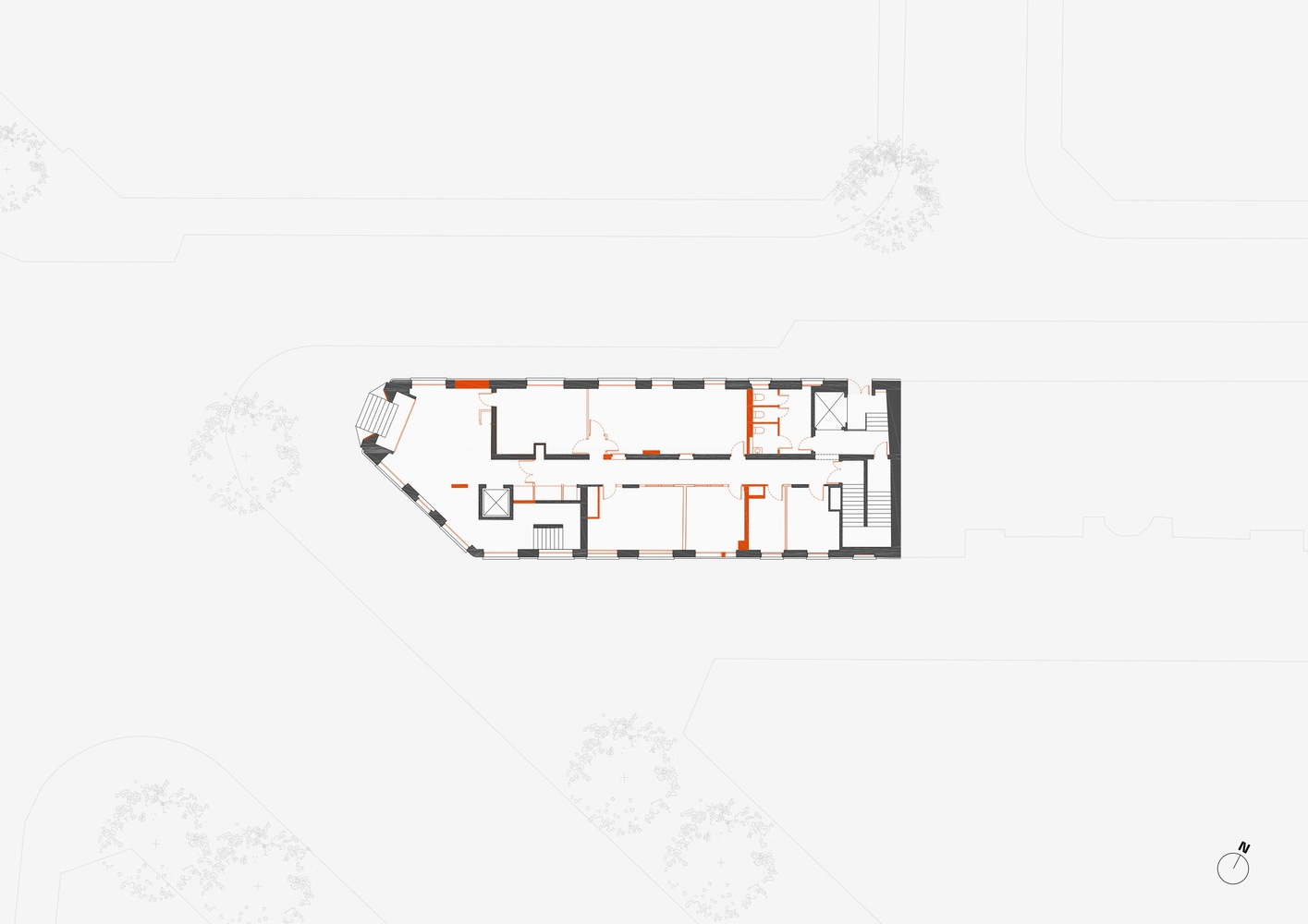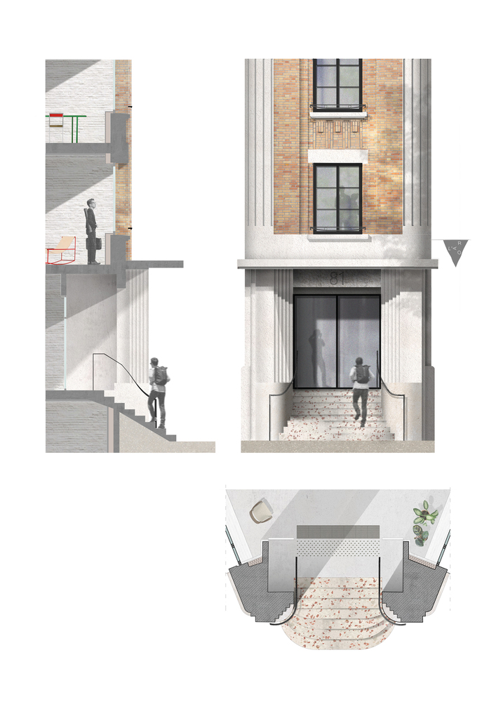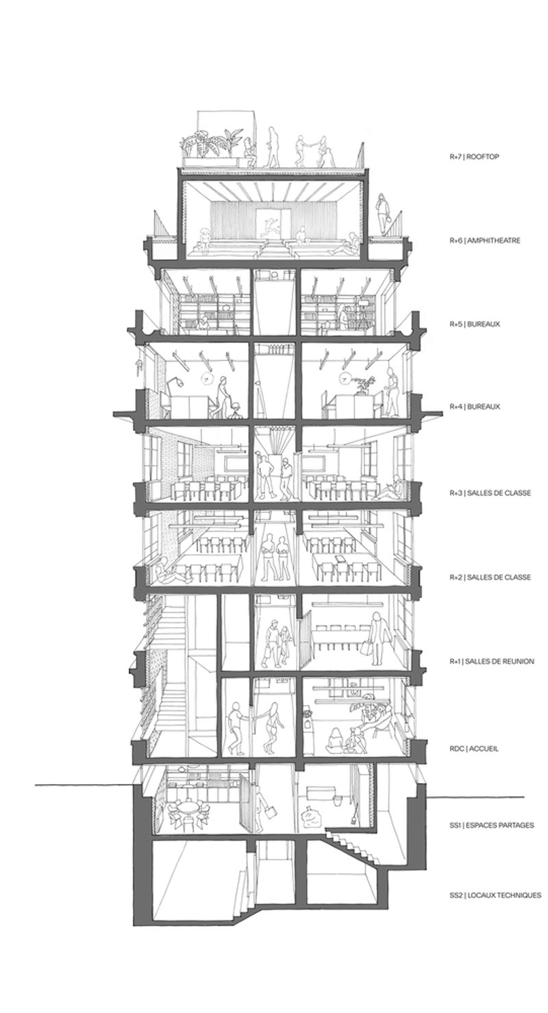 The building that houses L'ARO Graduate School has undergone multiple transformations throughout its existence. Its architectural evolution has added layers of complexity, reflecting the changing needs of the city. Initially built for the Bluets Clinic, its successive alterations made it a hybrid space that demanded creative and adaptive solutions. Located at the intersection of Avenue de la République, rue des Bluets, and Cité Bertrand, the building’s strategic positioning made it an attractive site for redevelopment.