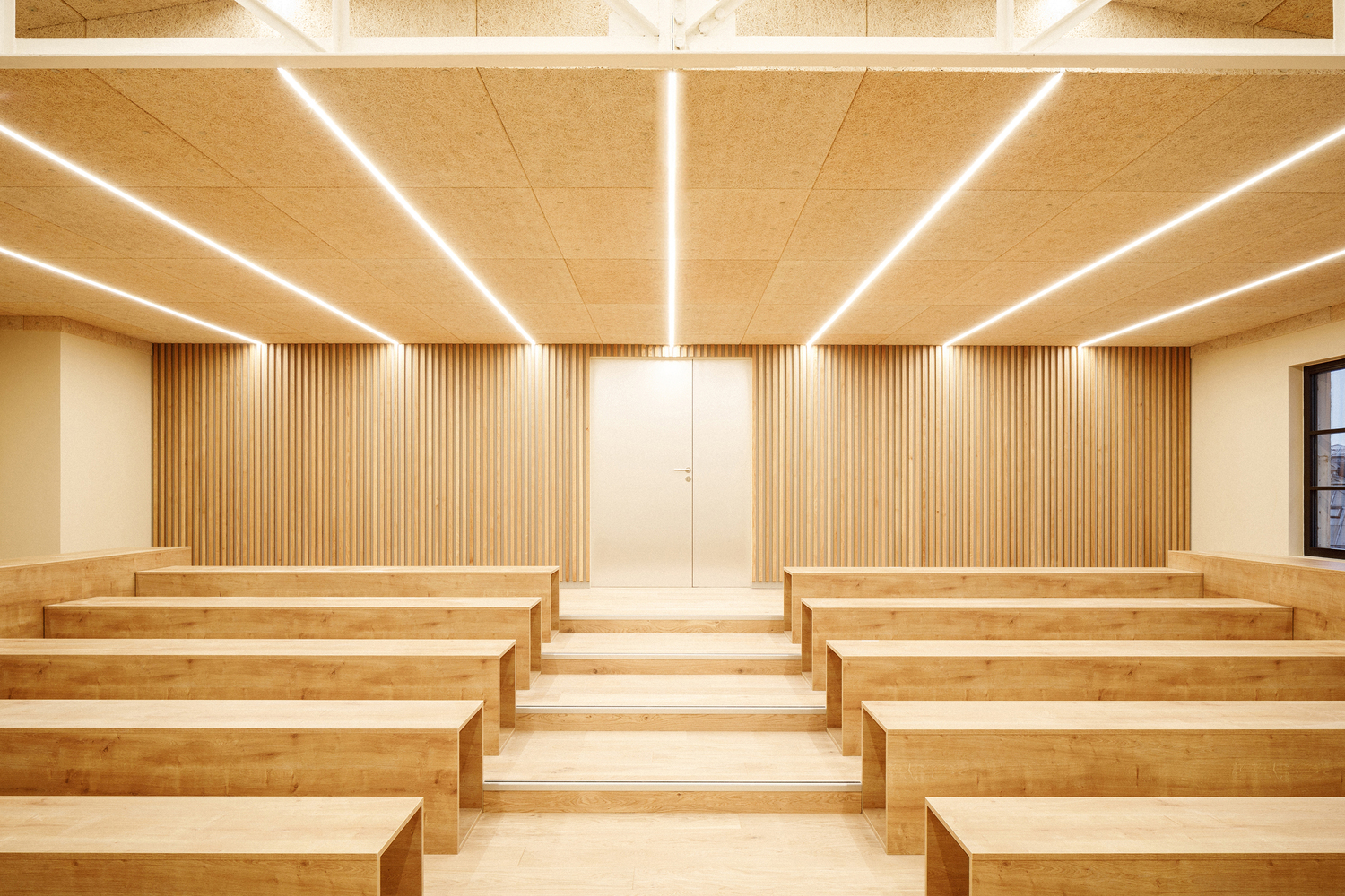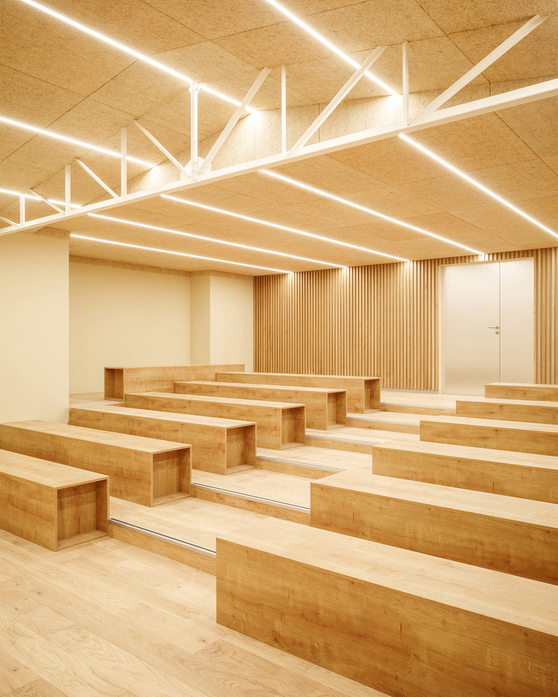 Sustainability is a core principle of the renovation, with numerous strategies integrated into the design to ensure that the building remains functional and relevant for years to come. The neutral tones used throughout the building’s interior facilitate adaptability, making it easier to reconfigure spaces for future use. The thoughtful material choices and the focus on durability ensure that the L'ARO Graduate School will stand the test of time while maintaining its architectural integrity.
