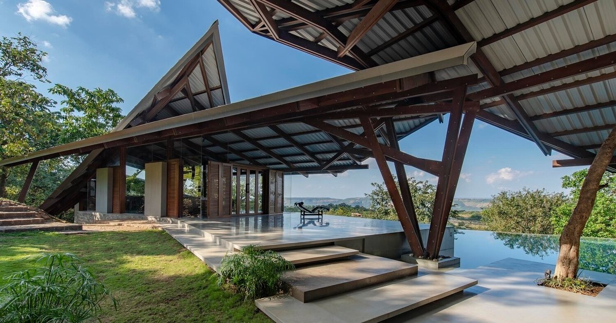 Located in Pune, India, the Lateral Verandah House by Malik Architecture is a striking residential project that extends the architectural language of the celebrated House of Three Streams, built on the same forested hillside. Completed in 2022, this 12,883 sq. ft. residence emerges as a sculptural response to its unique site—steep slopes, dense vegetation, shifting ravines, and dramatic monsoon winds shaped by the Pawna Dam to the north-east and low-lying hills to the south-west.