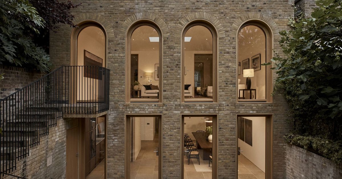 Joseph Mills Architects Restores a London Townhouse with Arched Openings and a Brick Courtyard