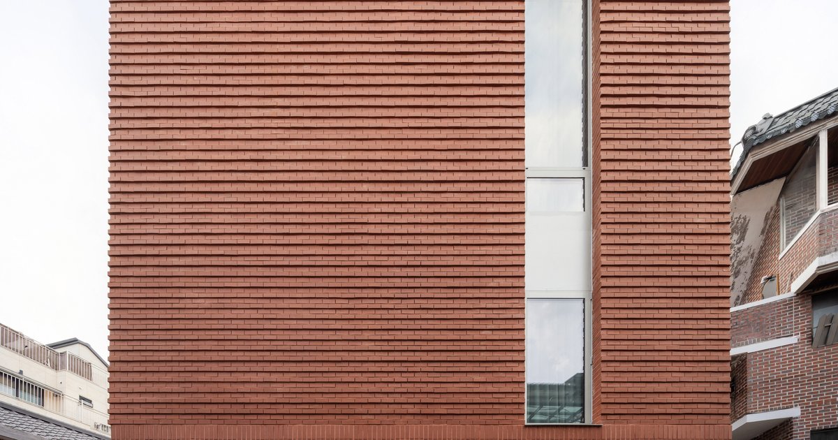 Externally, the Layered Building reads as a compact, protective shell, wrapped in red brick.Rather than opening outward, it turns inward, emphasizing introspection and personal space.