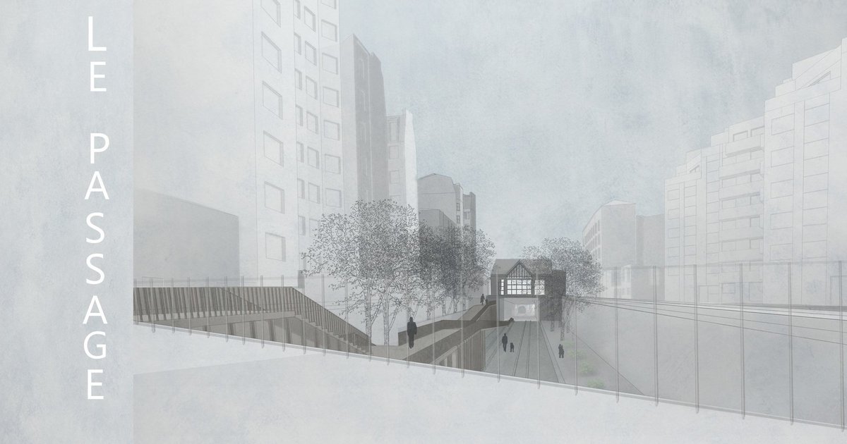 Le Passage identifies this condition not as a problem, but as an opportunity. The project reads the site as a linear sequence of spatial strata: retaining walls, rail tracks, vegetation, and adjacent urban edges. This layered reading becomes the foundation for the intervention.