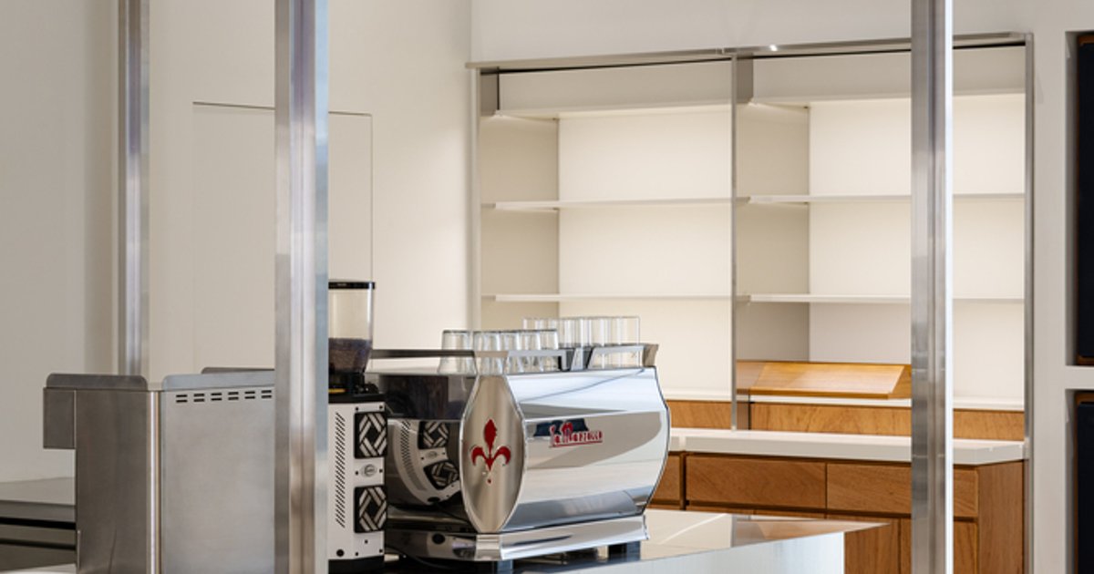 An industrial-inspired café where layered steel and warm light create a dynamic, immersive environment shaped by reflection, depth, and perception.