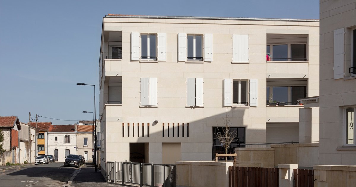 Les Échoppes Bastide Housing reinterprets Bordeaux stone architecture, combining traditional masonry, modern housing typologies, sustainability, and contextual urban design.