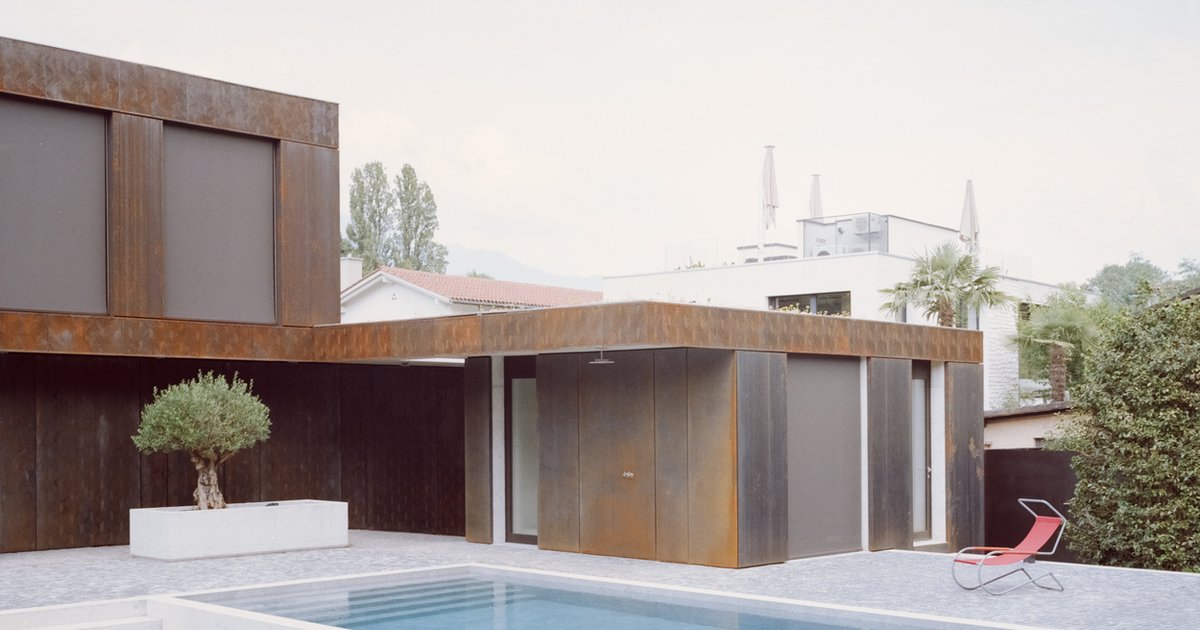 A refined corten steel house renovation in Ascona, blending architectural volumes, landscape, and material evolution into one unified dwelling.