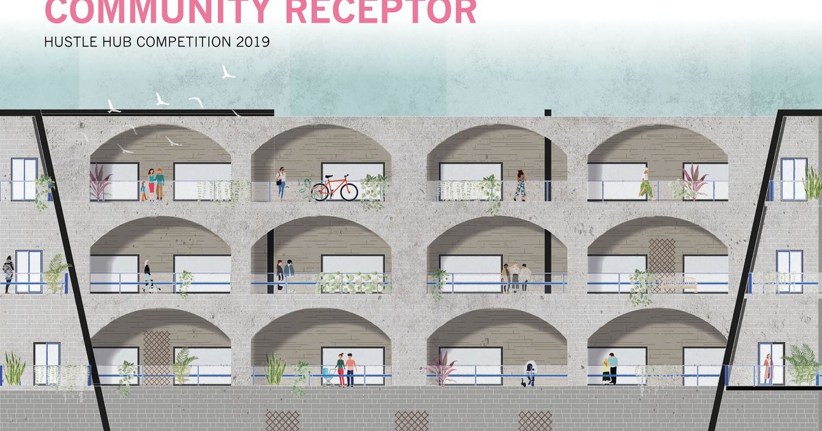 This project Community Receptor, a shortlisted entry in Hustle Hub 2019, was envisioned by Gulmeena Barlas, Ngan Phan, and Marie-Helene Lesiege. Their innovative design approach blends historical depth with modern functionality, creating a unique intersection of work, play, and living.