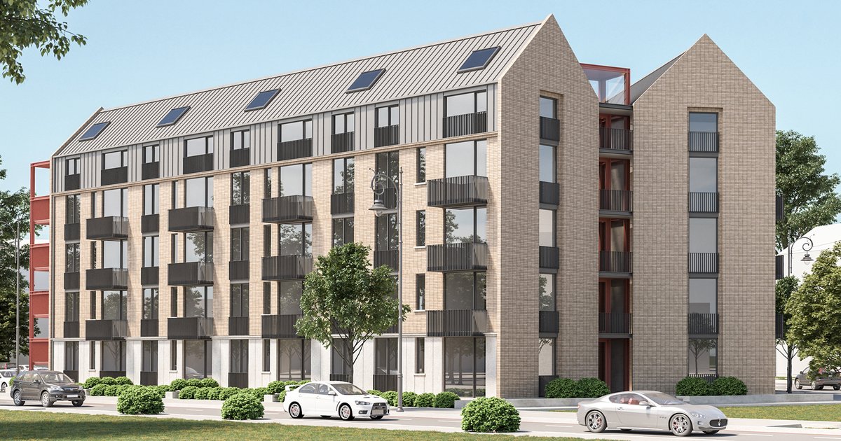 Project is located in London city, UK. The site is triangle in shape, holds direct connection from two main roads and is surrounded by the industrial and four to five floor-storey residential buildings. The concept behind the project was to understand and fulfill the basic needs of the people who are searching for a home on a survival level. I concidered socio-cultural, economic, environmental settings and created multiplicable housing units for 2 user groups: - For Young Adults: 18-25 Years: full-time or part-time workers or students, families with 1-2 family members - 30 small-sized housing units, with the space of 38 sq.m. each. Space includes: great room (open concept kitchen, dinning and living areas), bedroom, wc and balcony (Front terrace for ground floor units) - For Working Professionals: 25-40 years(creative freelancers, healthcare, software developers, etc). Families with 3-4 family members - 10 medium sized housing units with the space of 55 sq.m. each. Space includes: great room (open concept kitchen, dinning and living areas), bedroom, wc and balcony (Front terrace for ground floor units). Despite the small living space, units fulfills basic living needs. The building itself is divided into two parts and outlines the site perimeter. This division helps me to better accommodate the building in the urban context, also creates small triangle-shaped, courtyard in the middle (550 sq.m) covered with green space. The building includes two staircases at the ends of both sides and one elevator in the middle. Project includes 16 open and 22 underground parking lots. The main building materials used in the project are: concrete and steel for structure and brick granite and goffered steel for the exterior cladding.