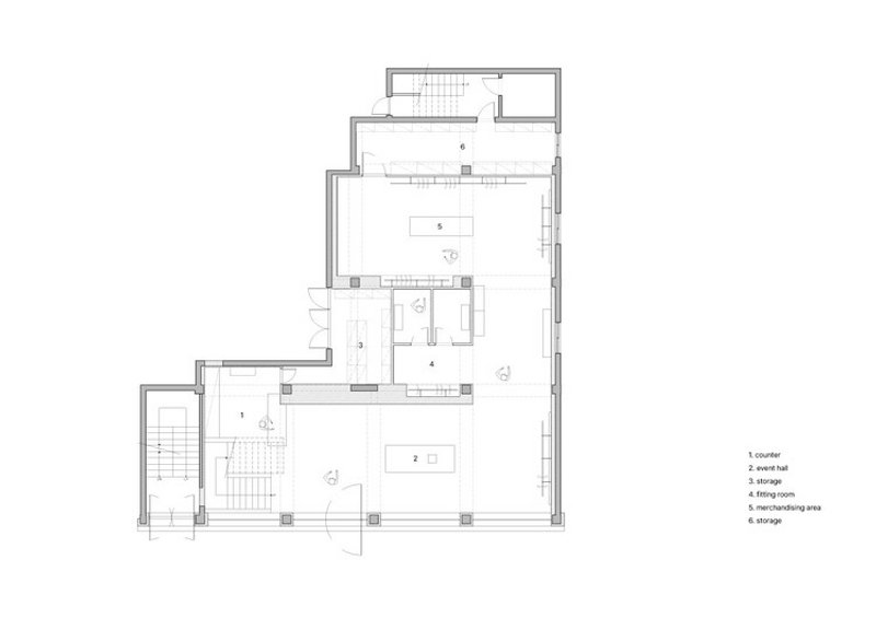 Together, these elements form the spatial core of the flagship store.