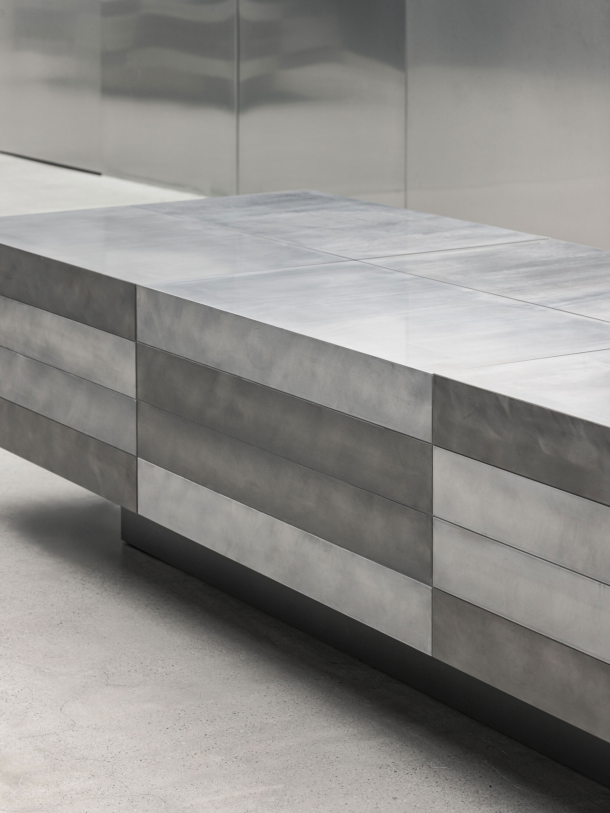 The materials themselves—hand-finished acrylics, brushed metals, and concrete—are chosen not for visual impact, but for their intrinsic qualities. Their subdued reflections and muted finishes reveal depth without spectacle.