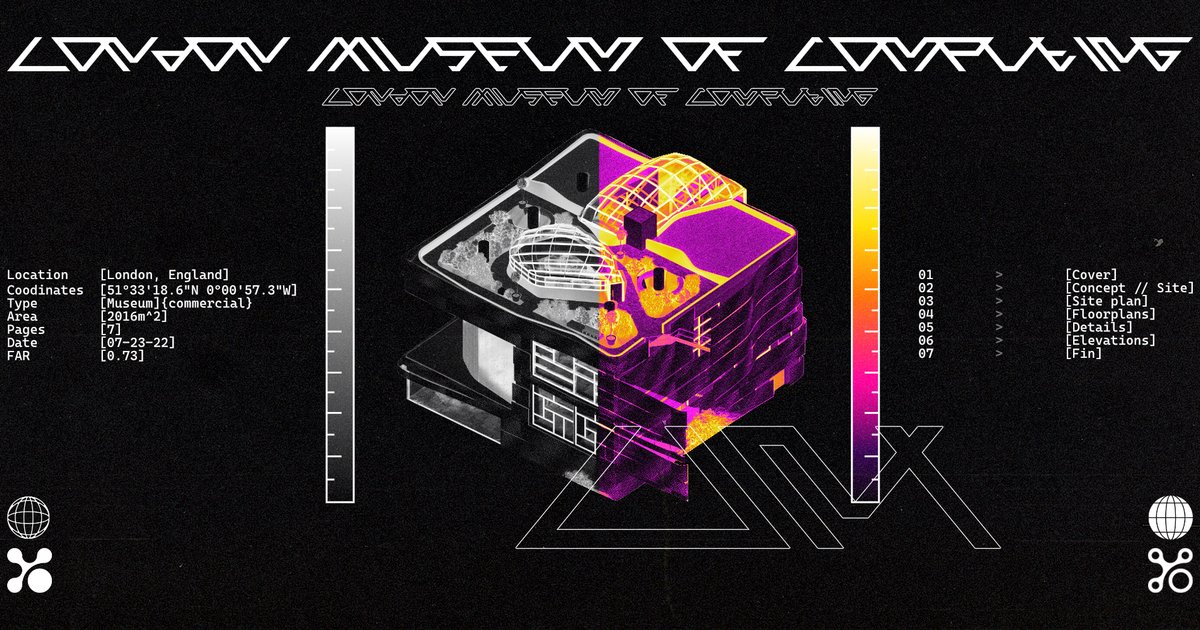 The concept went through many many iterations, each being drastically different from one another, and the forms I ended up choosing were mostly due to the site and how it relates to the area. Through time, the museum will gain new attractions as well as keeping the historic ones. Technology is constantly evolving so a museum is possibly the best thing to showcase that with revolving exhibits. The London Museum of Computing shows us that the future we see is behind us, and society will reinvent technology as we see it today.