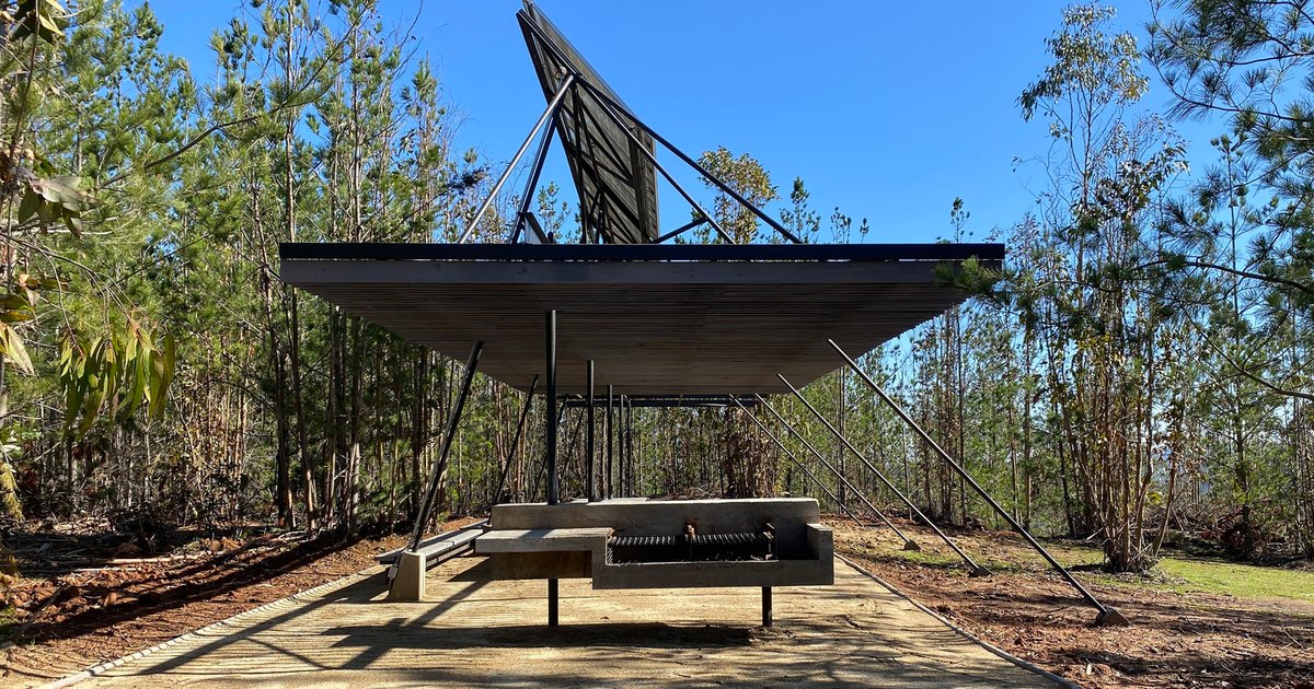 Situated on a wild and undeveloped site, the Los Colihues Pavilion was envisioned as a structure that supports the installation of photovoltaic panels, generating energy for lighting and water pumping systems. Beyond its technical function, the pavilion creates a shaded refuge, fostering a communal atmosphere around a large central table. By merging sustainable energy solutions with a thoughtful spatial design, the project establishes a unique dialogue between architecture and nature.
