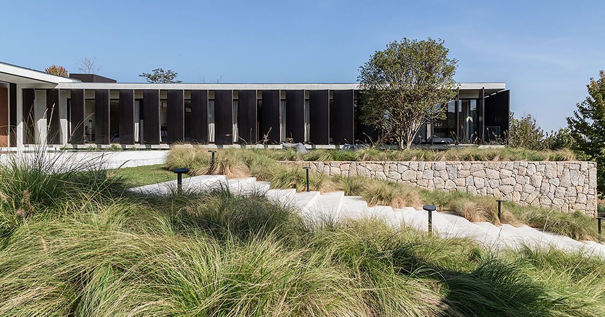 Built on a gently rising site, the house cleverly responds to the topography. A broad artificial plateau was created to elevate the structure, giving every room a privileged view of the surrounding landscape. This not only resolved the slope but also established a grand visual and spatial relationship between the home and its environment.