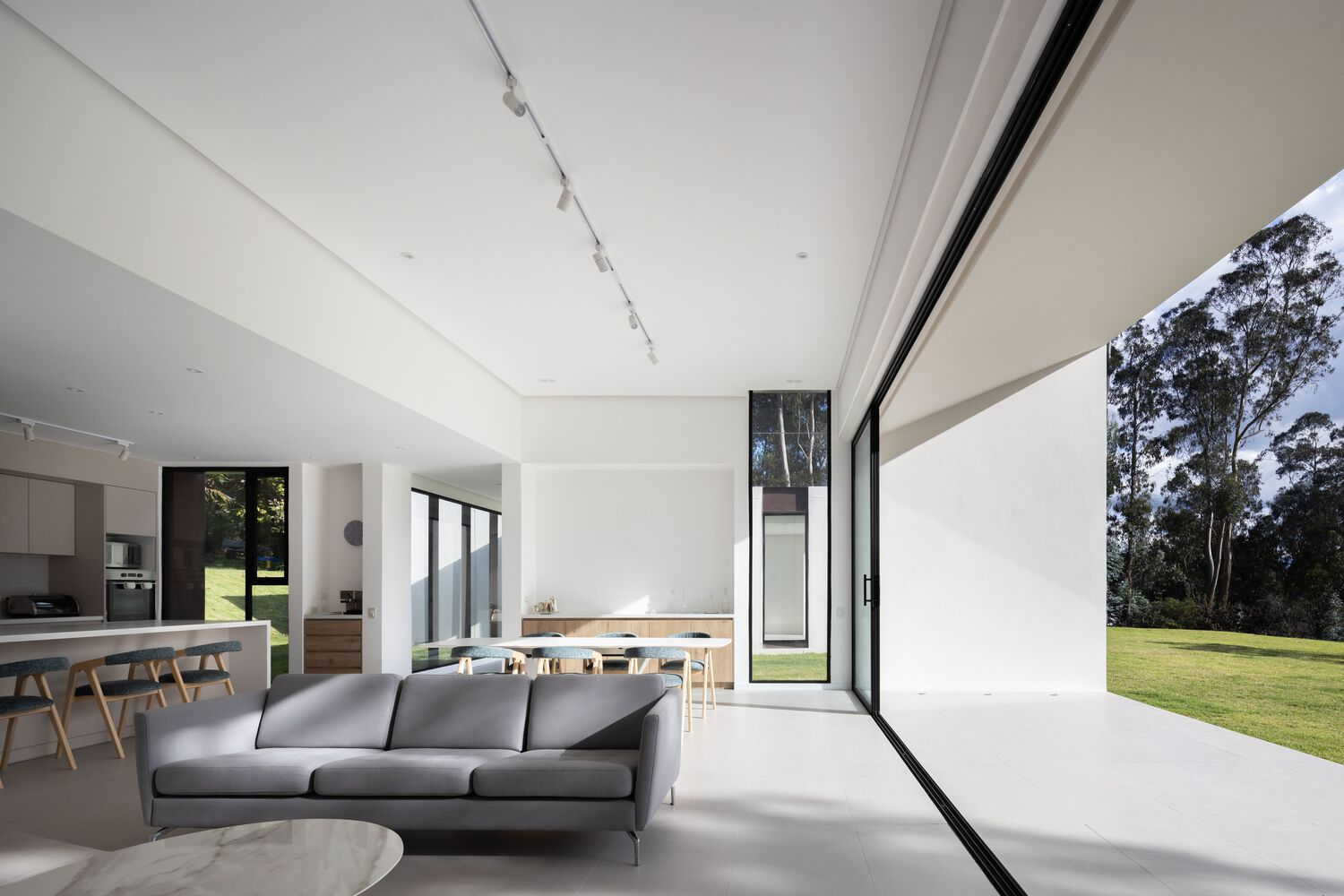 Magnolia House in Ecuador blends sculptural architecture with nature, featuring independent volumes, sunlight-oriented spaces, transparency, minimal materials, and family-focused design.