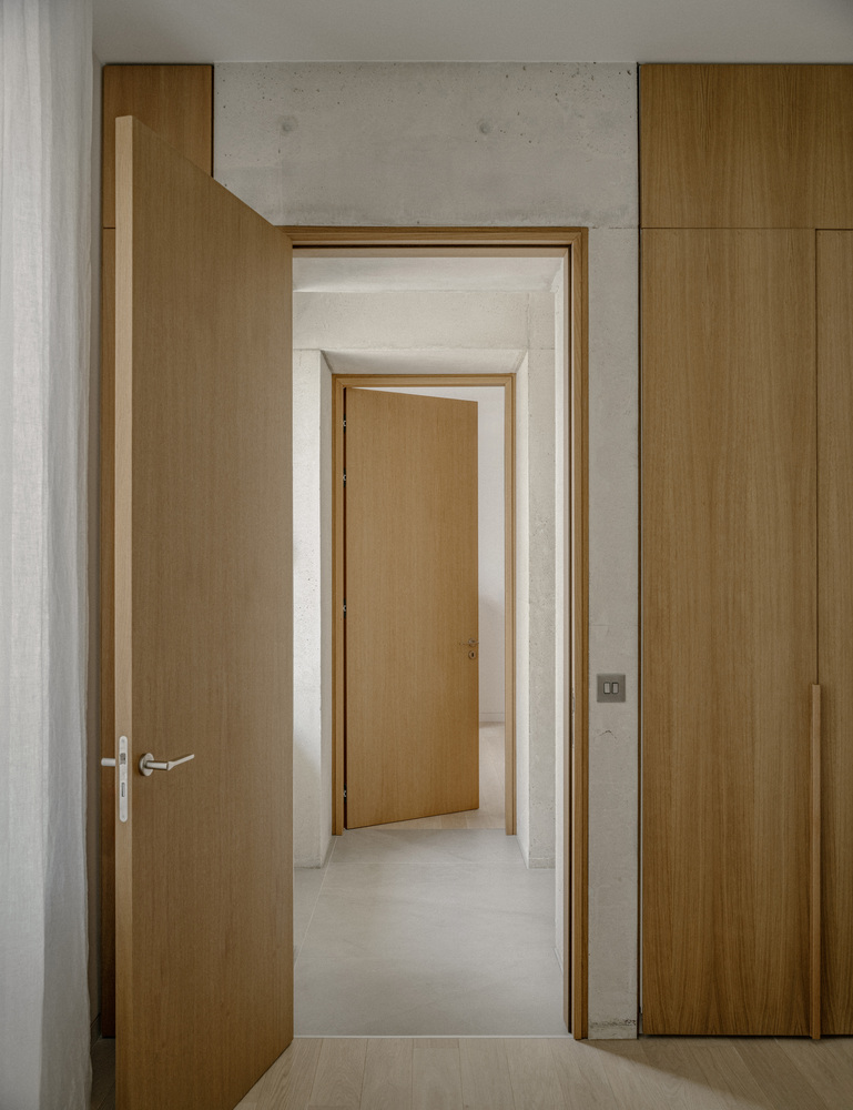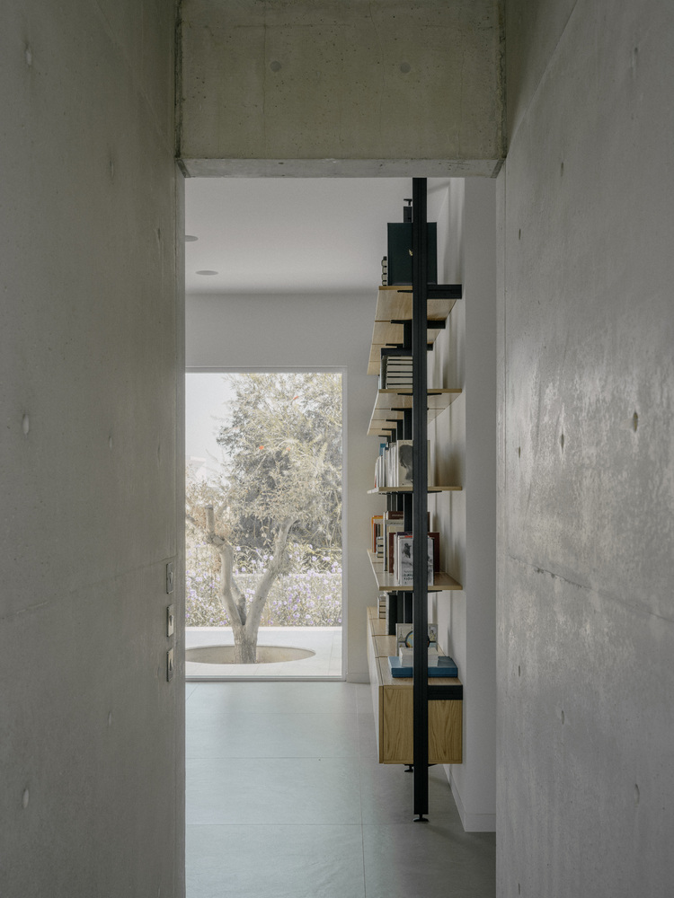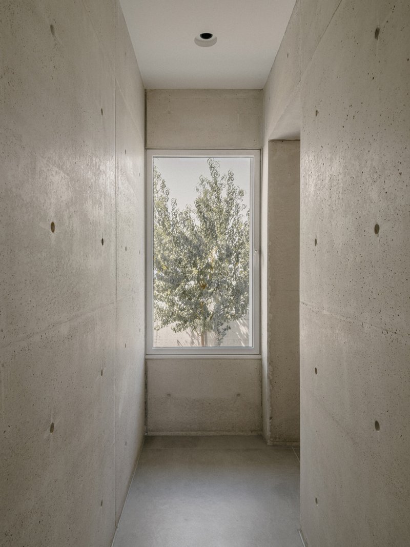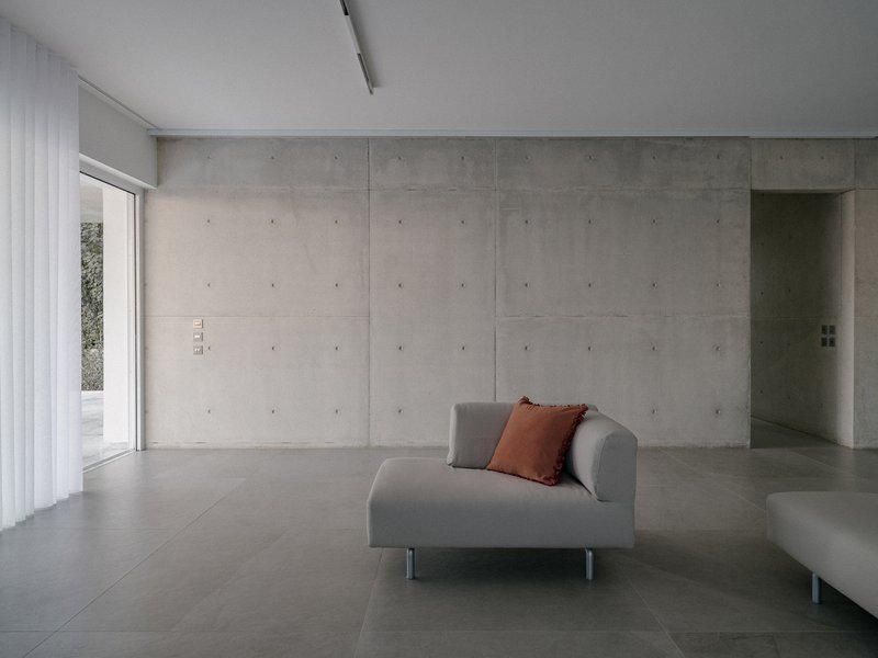 This interplay between solid and void, enclosure and openness, results in a residence that feels both protected and connected to its surroundings. The restrained material palette, dominated by concrete, enhances the raw yet refined aesthetic of the home.