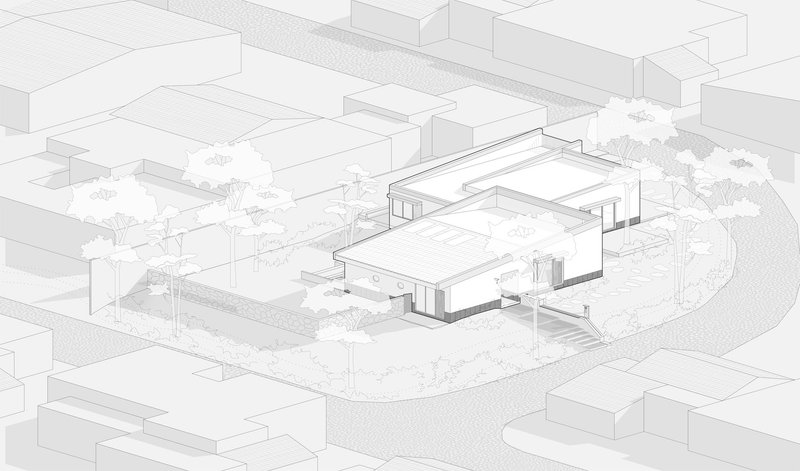 The architectural intervention emphasizes the creation of fluid indoor-outdoor spaces. Gardens and terraces form an integral part of the design, ensuring privacy while offering scenic views of the lush surroundings. The two volumes are interconnected through open courtyards, parking areas, and terraces that extend the functionality of interior spaces such as dining rooms, bathrooms, and bedrooms.