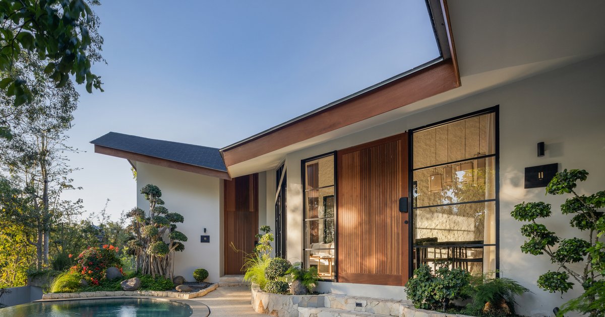 One of Mama Minka House’s most captivating features is its sculptural flip roof, a design inspired by the art of origami. Unlike conventional pitched roofs, this angled and folded structure creates varying ceiling heights, casting dynamic shadows throughout the interiors. The flip roof not only enhances the spatial experience but also strengthens the villa’s dialogue with nature, echoing the contours of the surrounding landscape.