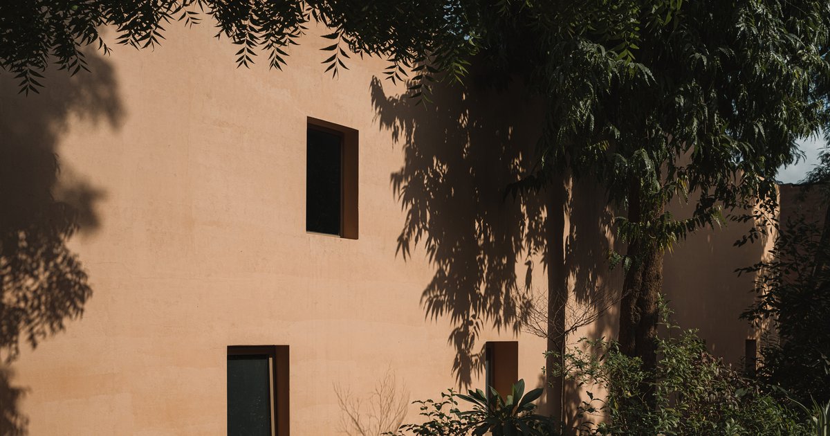 From the outside, the studio is shielded by compound walls rising up to six meters, blending into the gritty industrial surroundings. However, stepping inside reveals a striking transformation. Lime-plastered monolithic walls painted in muted pink disrupt expectations, creating a bold contrast with the industrial context. The absence of a clear entryway intensifies curiosity, inviting exploration rather than dictating movement.
