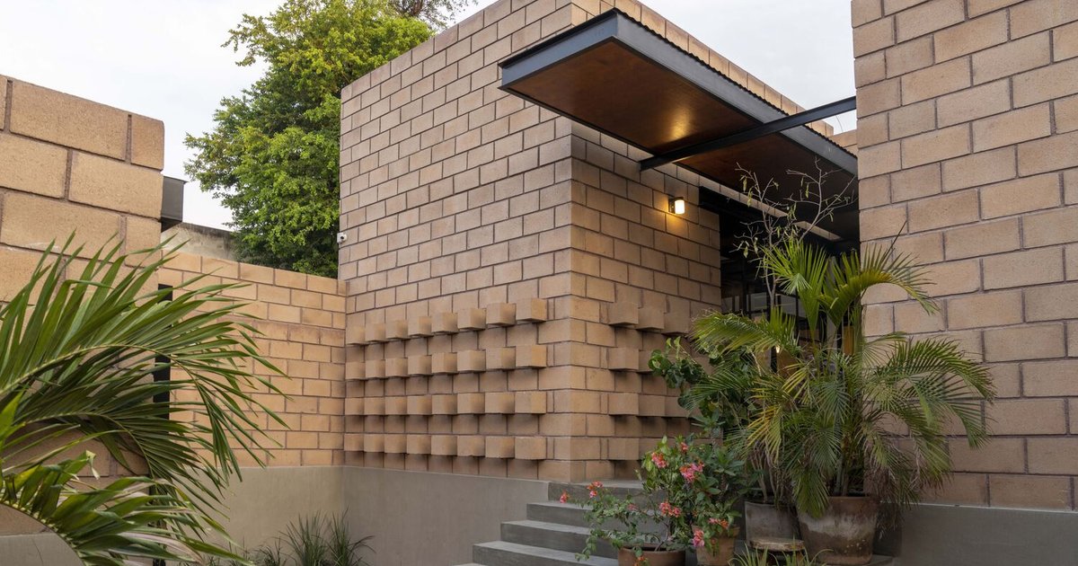 The house’s interior spaces are simple yet expressive, with materials like brick, raw concrete, and wood revealing the structural honesty of the build. The interior palette is warm and earthy, emphasizing natural ventilation, open connections between rooms, and views to planted courtyards from every major space—including the bedrooms and living areas.