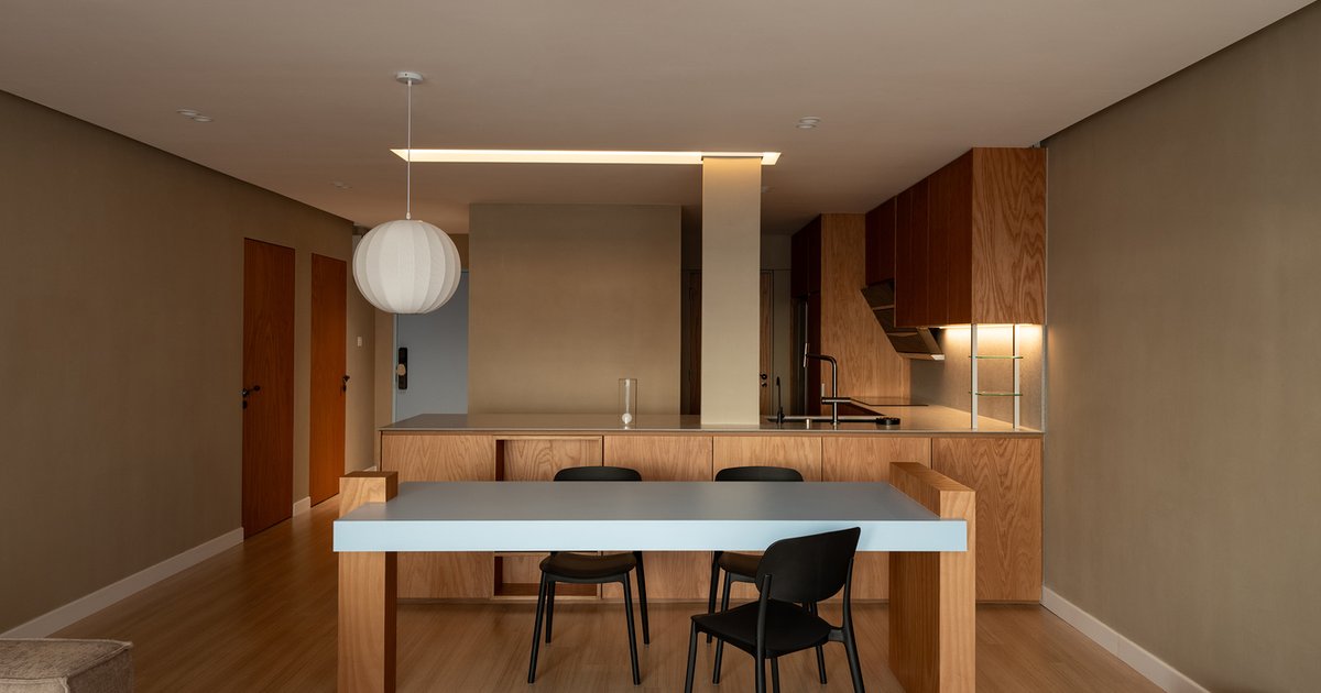 The original apartment layout reflected the familiar challenges of city living: narrow rooms, limited daylight penetration, and isolated functional zones, especially in the kitchen. DualSpace Studio approached the redesign through strategic subtraction, removing walls that once divided the kitchen, dining, and living areas. This gesture opened the home into a fluid, communal core—an inviting zone where daily rituals unfold naturally and family connection becomes effortless rather than prescribed. The newly expanded space enhances natural light, improves airflow, and establishes a calm visual continuity anchored by warm timber tones and soft earthy neutrals.