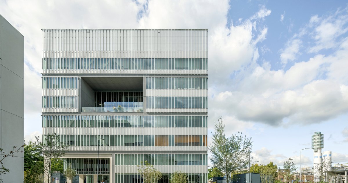 The Marie Curie Office Building in Oss combines flexible labs, sustainable design, collaborative spaces, and striking architecture, fostering innovation and pharmaceutical research.