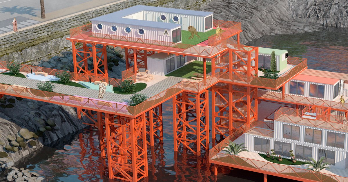 The main aim of the project is to create a comfortable dwelling for maritime students. We created a multilevel system which consists of metal trusses, platforms, 15 containers 40 and 20 feet wide. All elements are fixed on a collapsible construction, which composed of trusses and beam ceiling. This method of space formation has the following advantages: