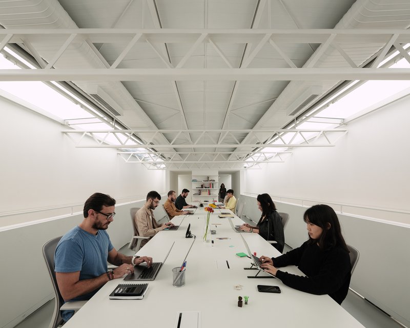 The juxtaposition of heavy and light materials reflects a thoughtful architectural strategy that responds to both programmatic and contextual demands. It enables the building to maintain a minimal footprint while offering functional flexibility and architectural expressiveness.