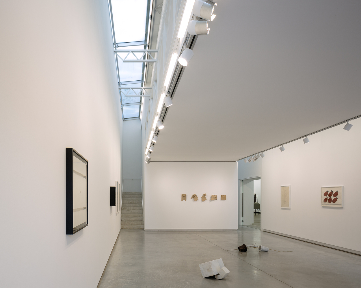 Elegant gallery expansion in São Paulo featuring skylit exhibition space, suspended mezzanine, and prefabricated steel elements by Undiú and Clara Werneck.