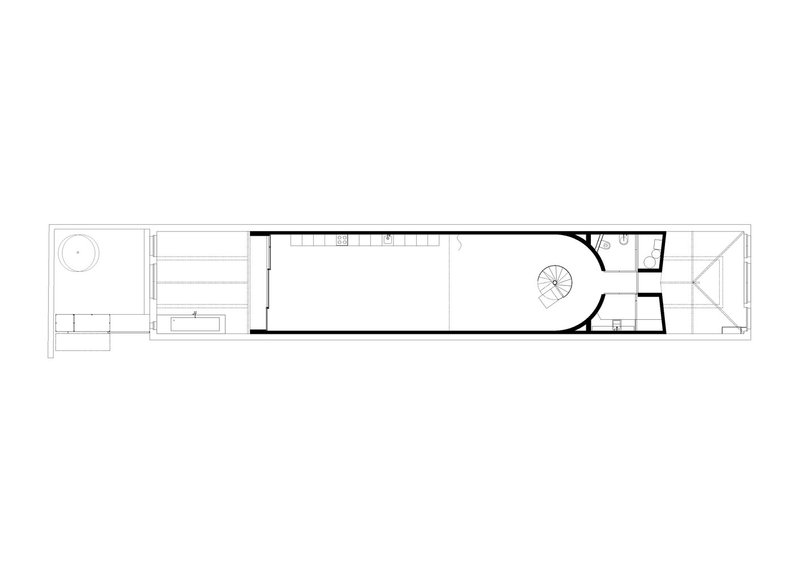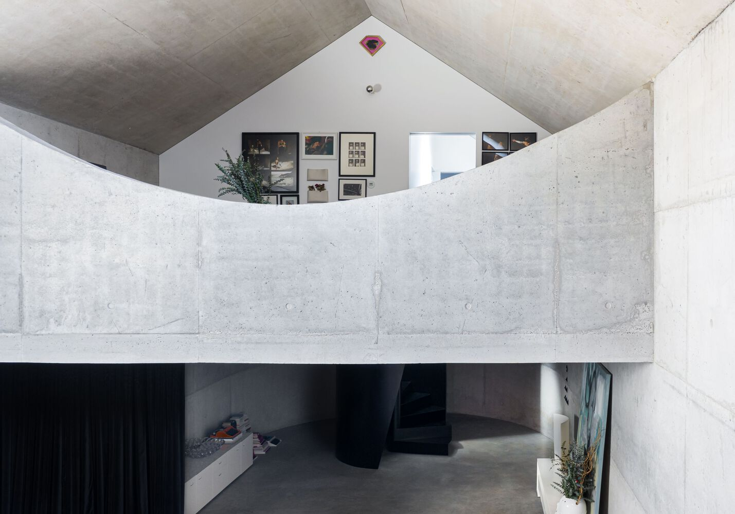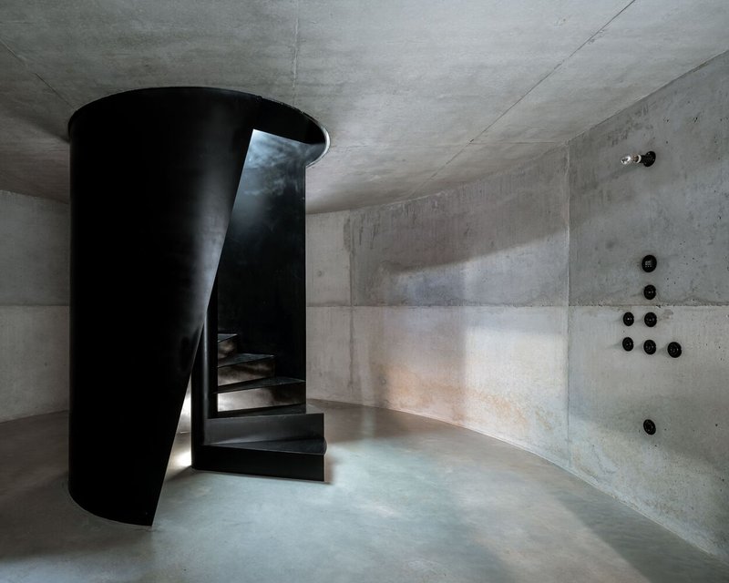 A striking feature within the residence is the black-painted iron spiral staircase, which seamlessly connects different levels. This sculptural element adds a dynamic vertical axis to the project, reinforcing the contrast between the robust industrial character of the warehouse and the refined elegance of the renovated interiors.