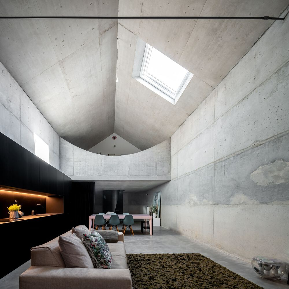 MIRAFLOR transforms an old warehouse into a contemporary home, preserving its historical essence while introducing a floating concrete interior volume.