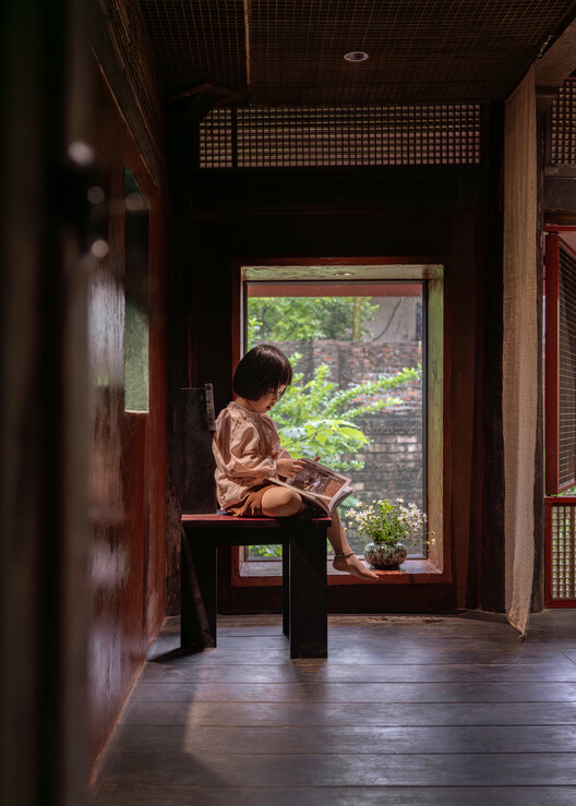 Laterite-inspired earthen walls, aged timber beams, and reused wooden columns evoke the scent, weight, and tactile memory of traditional northern Vietnamese houses. Visitors are invited to wander slowly, allowing their minds to drift through space and material, discovering that what feels ancient can also be contemporary, comfortable, and quietly luxurious.