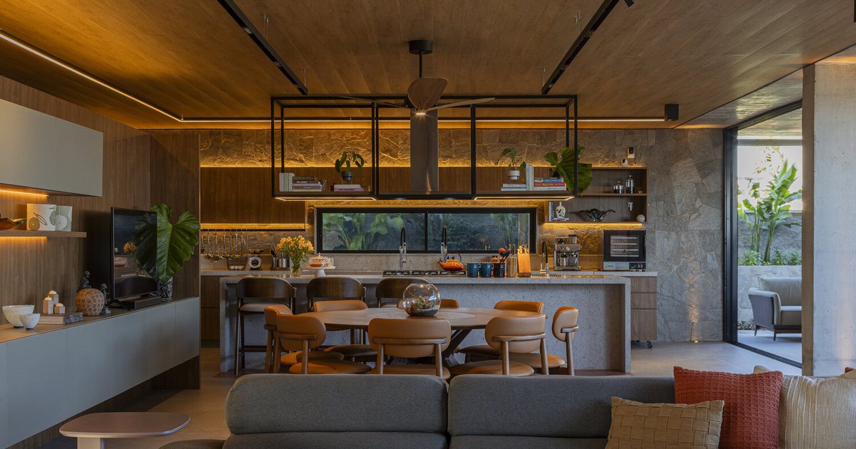 The design concept of the RA House revolves around the idea of memory and domestic life. The kitchen, the heart of the home, serves as the primary gathering space where family traditions continue. Beyond functionality, the architects sought to recreate the atmosphere of warm Brazilian homes where interior life naturally blends with the outdoors, making the house both practical for everyday living and expansive for social occasions.
