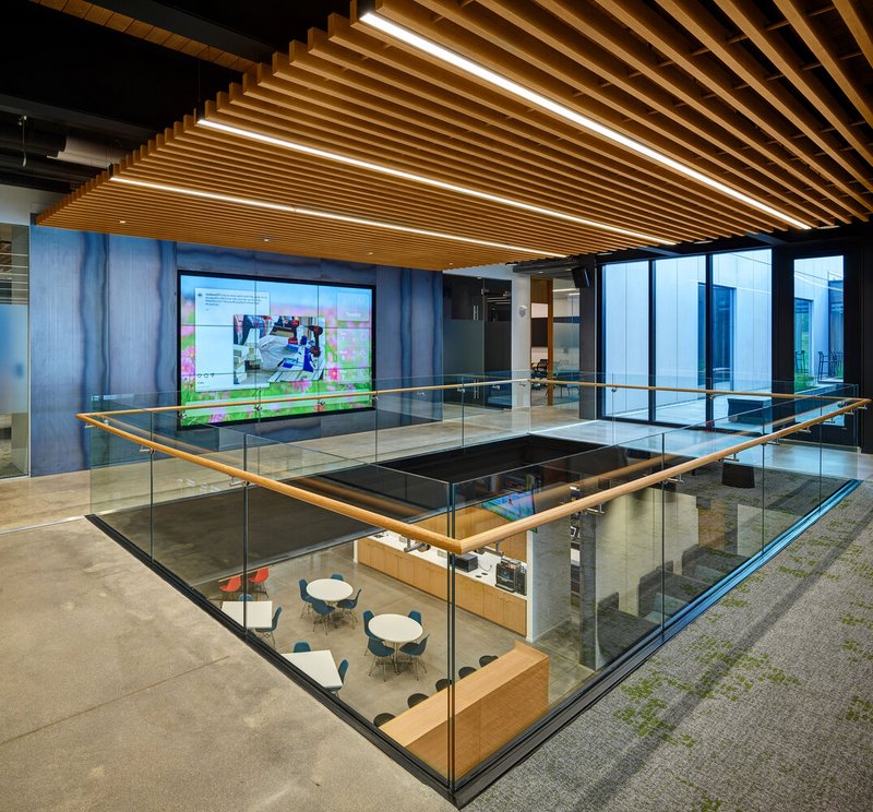 Here, a dynamic central stair — sculptural and functional — becomes a stage for all-hands meetings, spontaneous conversations, and cross-departmental interaction. It’s more than a design element; it’s a gesture of organizational transparency and openness.