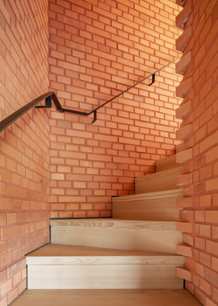 The project demonstrates how sustainable architecture does not always rely on technological complexity. Sustainability here is achieved through the use of few, long-lasting materials—primarily brick, timber, and clay plaster. This reduced palette allows for a high level of craftsmanship and ensures the longevity of the interventions.