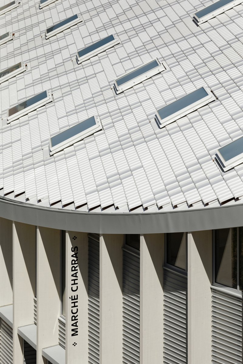 The Charras Market Hall serves as more than a commercial hub; it is a multi-purpose urban centerpiece. Traders occupy the market three days a week, while the adaptable layout accommodates additional uses beyond market hours. A two-story brasserie on the street-facing side activates the building’s frontage, offering a lively dining experience that extends into the public realm. A concierge service, located along the southern edge, facilitates parcel collection and enhances the convenience of daily life for residents and visitors.