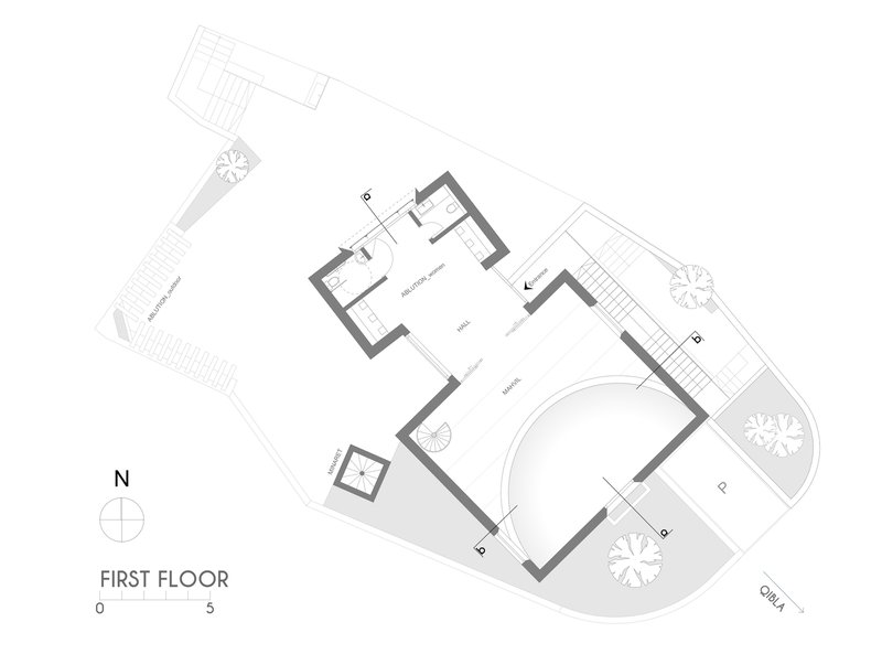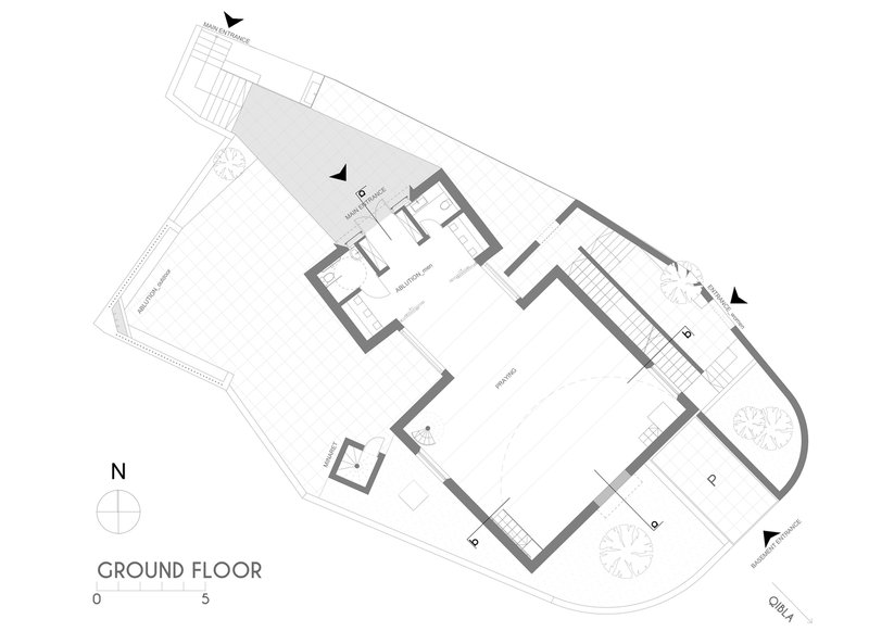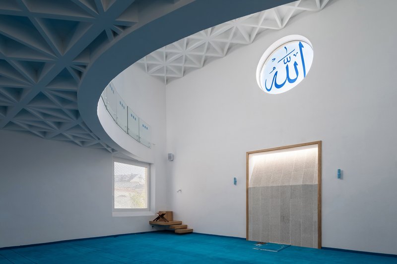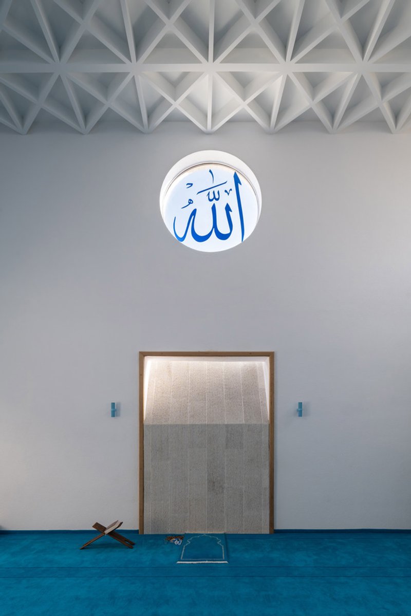 Inspired by this local tradition, the mosque incorporates single-pitched roofs and a courtyard enclosed by sloped walls. These elements ground the structure in its context while infusing it with modern clarity. The resulting design respects the established architectural language of the neighborhood, illustrating how modern mosque architecture can seamlessly integrate with its surroundings.