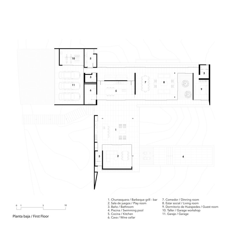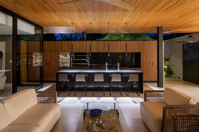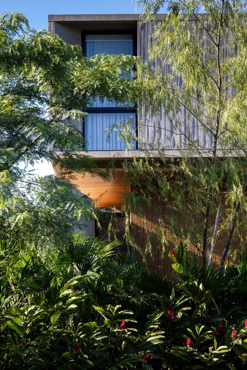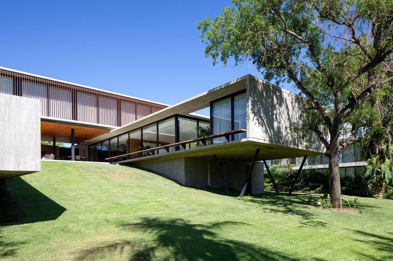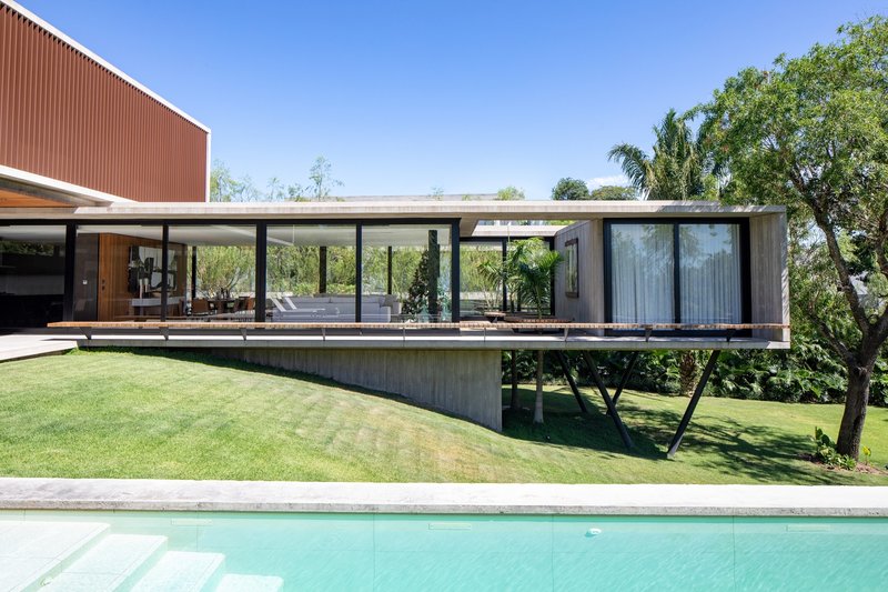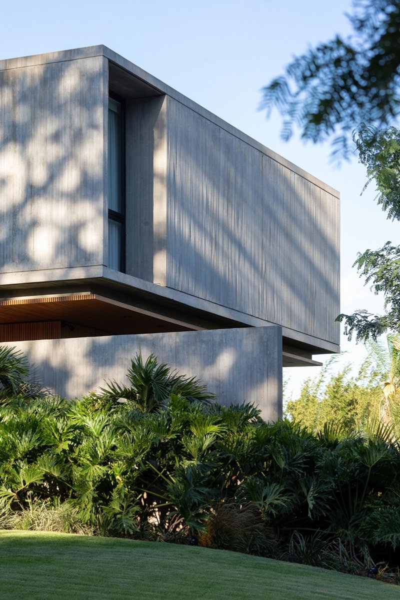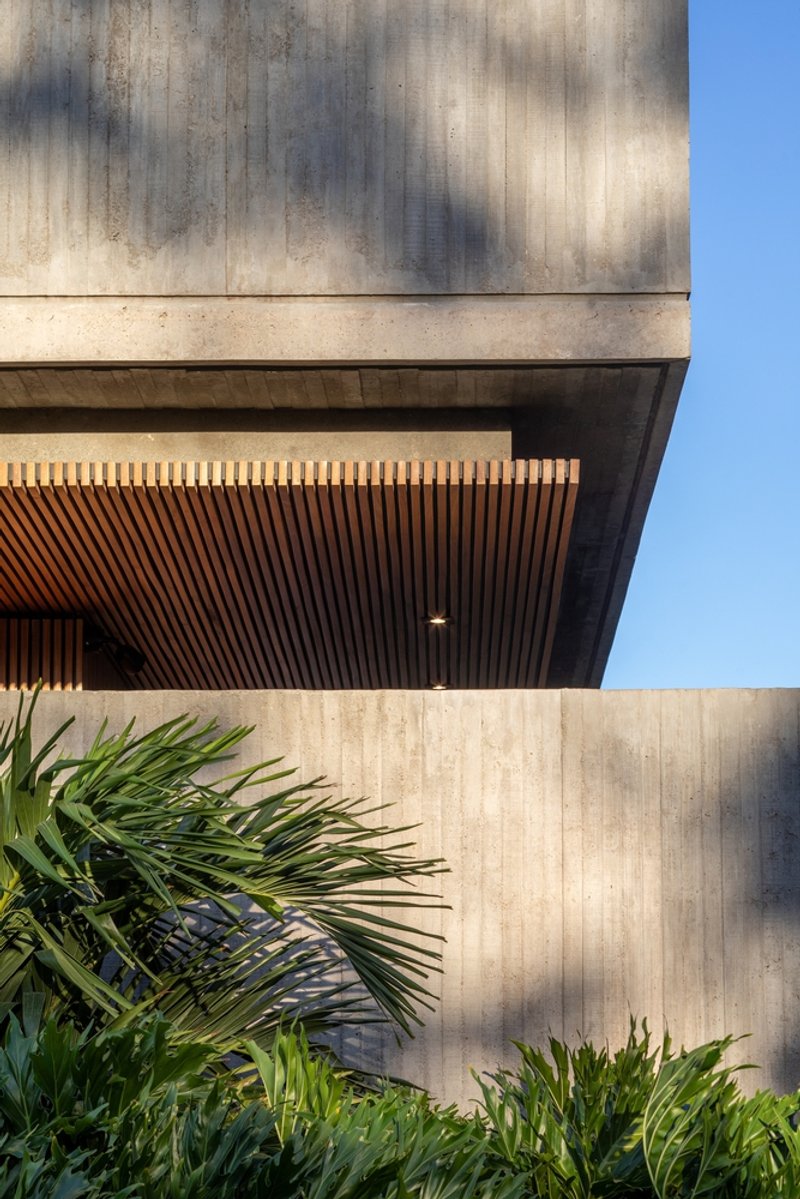 The predominant use of concrete, complemented by wood and glass, enables a dialogue between the house and its natural surroundings. These materials not only enhance the aesthetic appeal but also serve functional purposes, amplifying the residence's connection to the outdoor landscape.