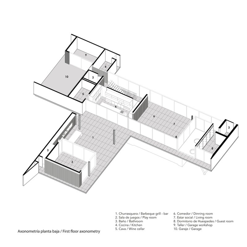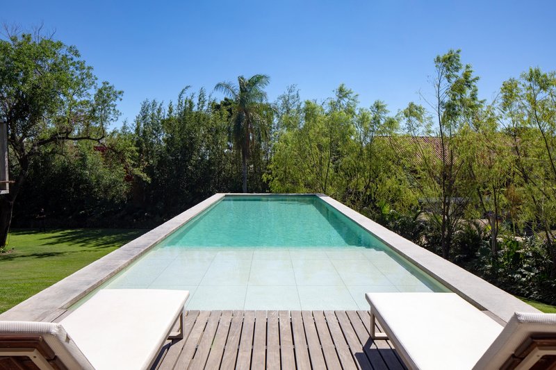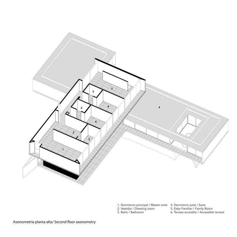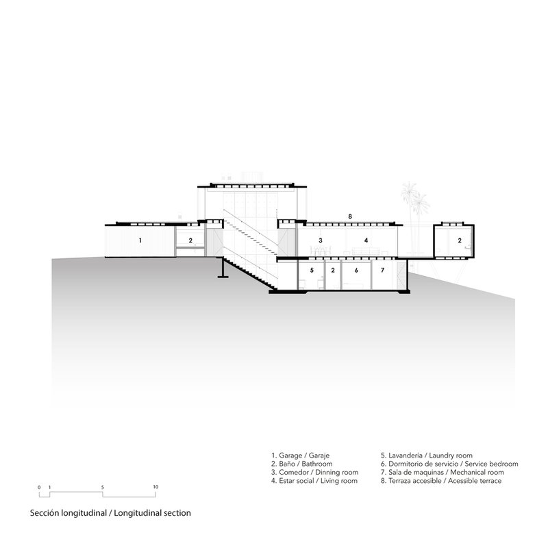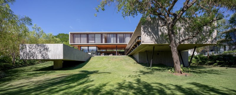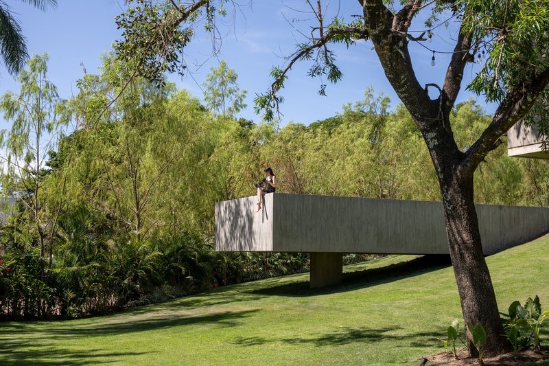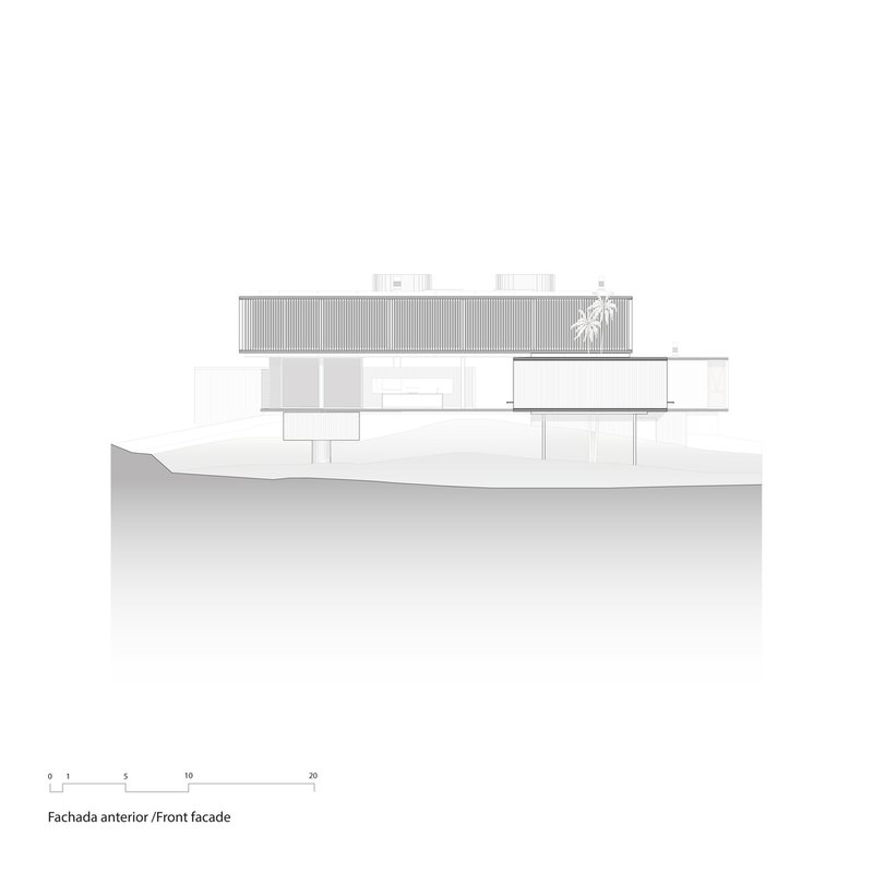 Strategically placed at the highest point of the topography, MS House leverages its sloping ground to extend its volumes outwards, enhancing the visual and spatial connection with its lush surroundings. This positioning allows for the ingenious integration of different levels within the home, connecting the social, private, and service areas effortlessly.