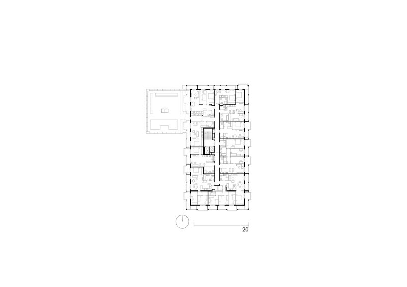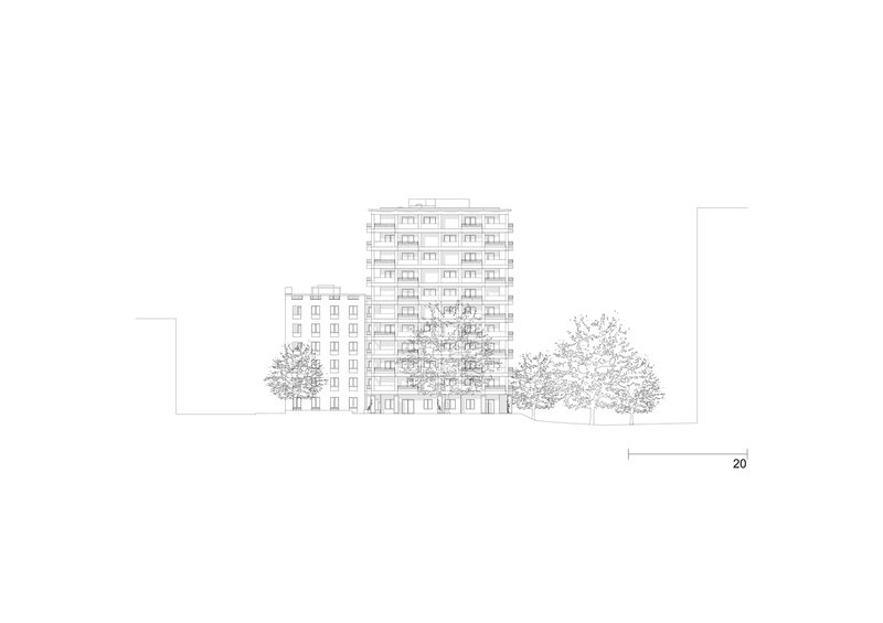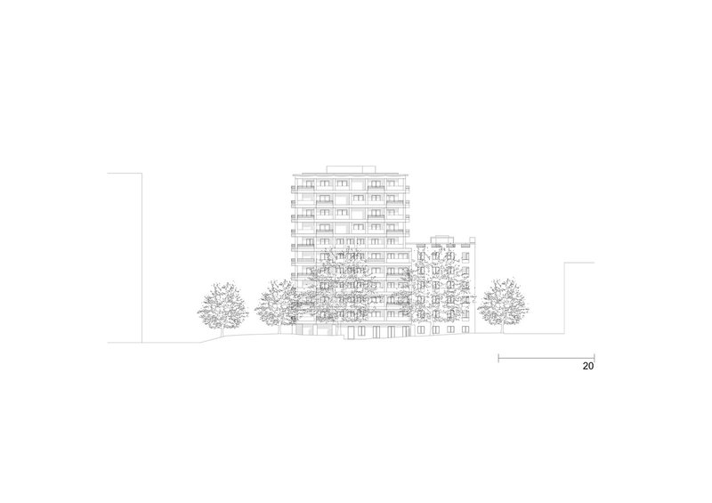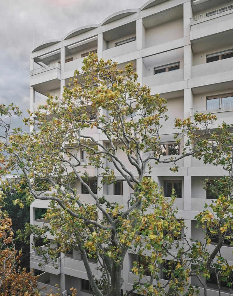 Situated between the park and the city, the social housing structure becomes an urban oasis. Despite its urban locale, the former barracks grounds boast a generous green area adorned with a diverse collection of trees. This verdant canvas serves as the inspiration for the architects, influencing the design to prioritize spaciousness, natural light, and a seamless connection between indoor and outdoor spaces.