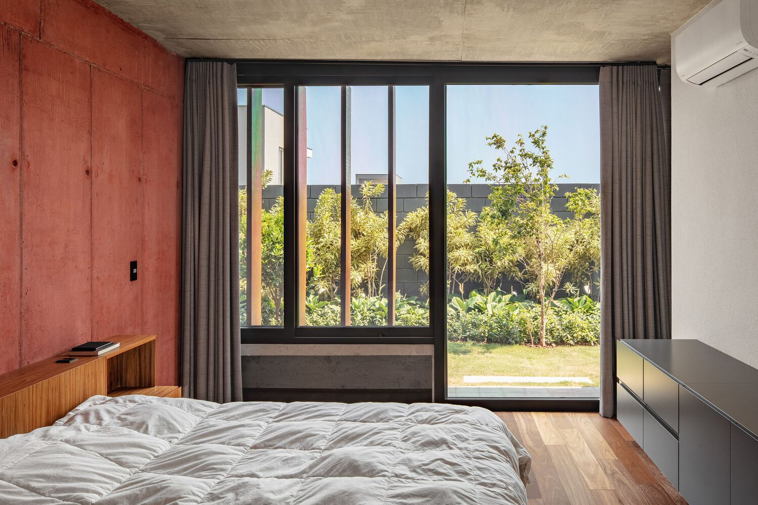 Private spaces on the lower level are positioned to open directly onto the garden. This connection:
