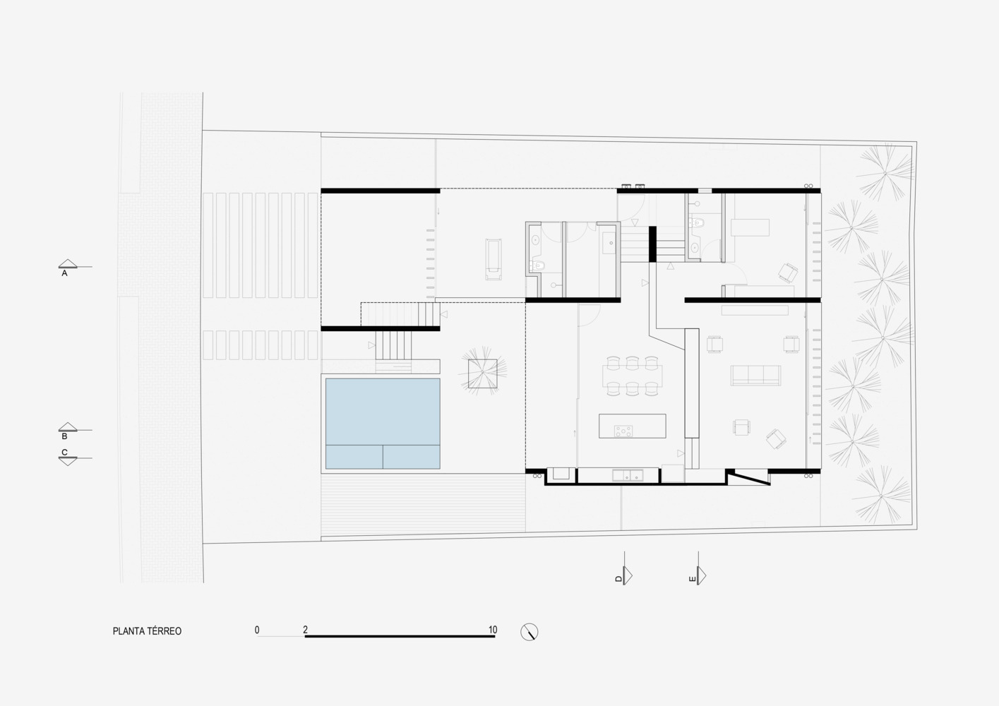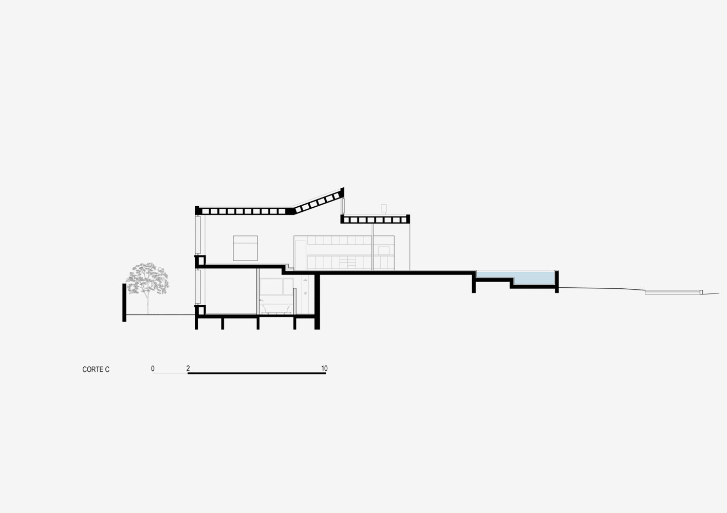 The natural slope of the land served as a primary design consideration. By elevating the social spaces by half a level relative to the street: