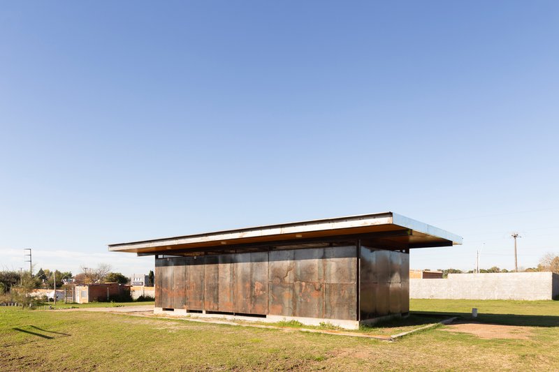 - Vertical Elements: Cruciform steel columns supporting raw steel panels, which function as doors, walls, and windows.