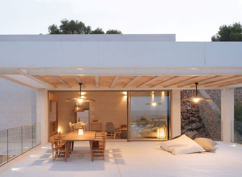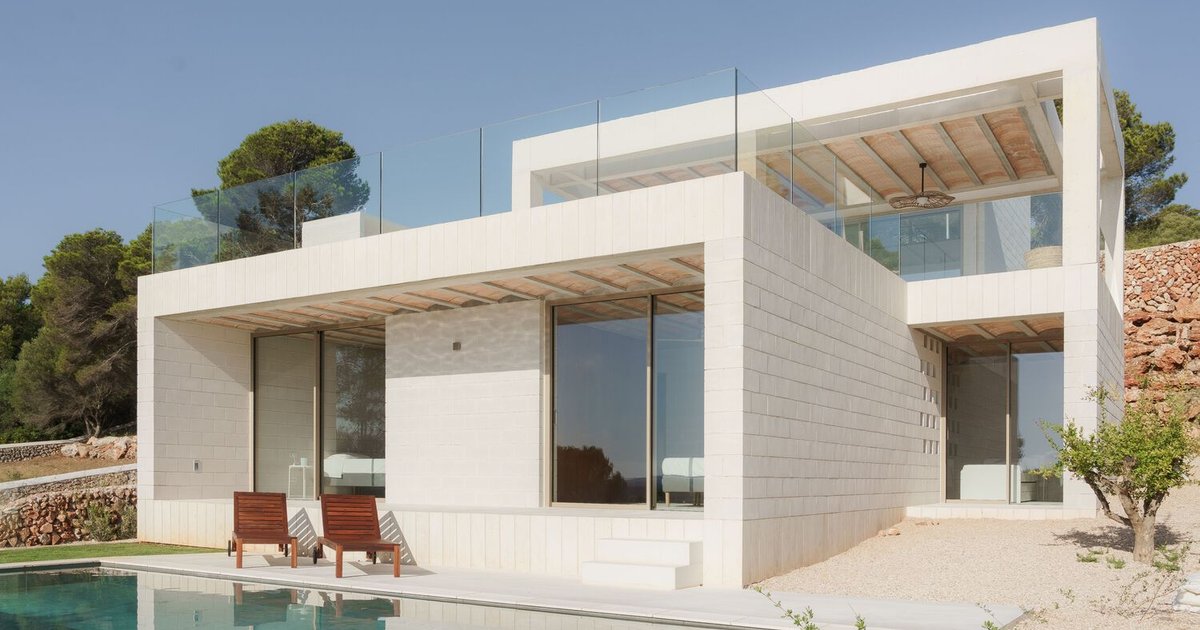 The architectural marvel, completed in 2023, is composed of four identical rectangular volumes arranged in a stepped formation to gracefully navigate the steep terrain of Menorca. This design not only optimizes the breathtaking views of the Mediterranean landscape but also integrates the building into its natural surroundings seamlessly.