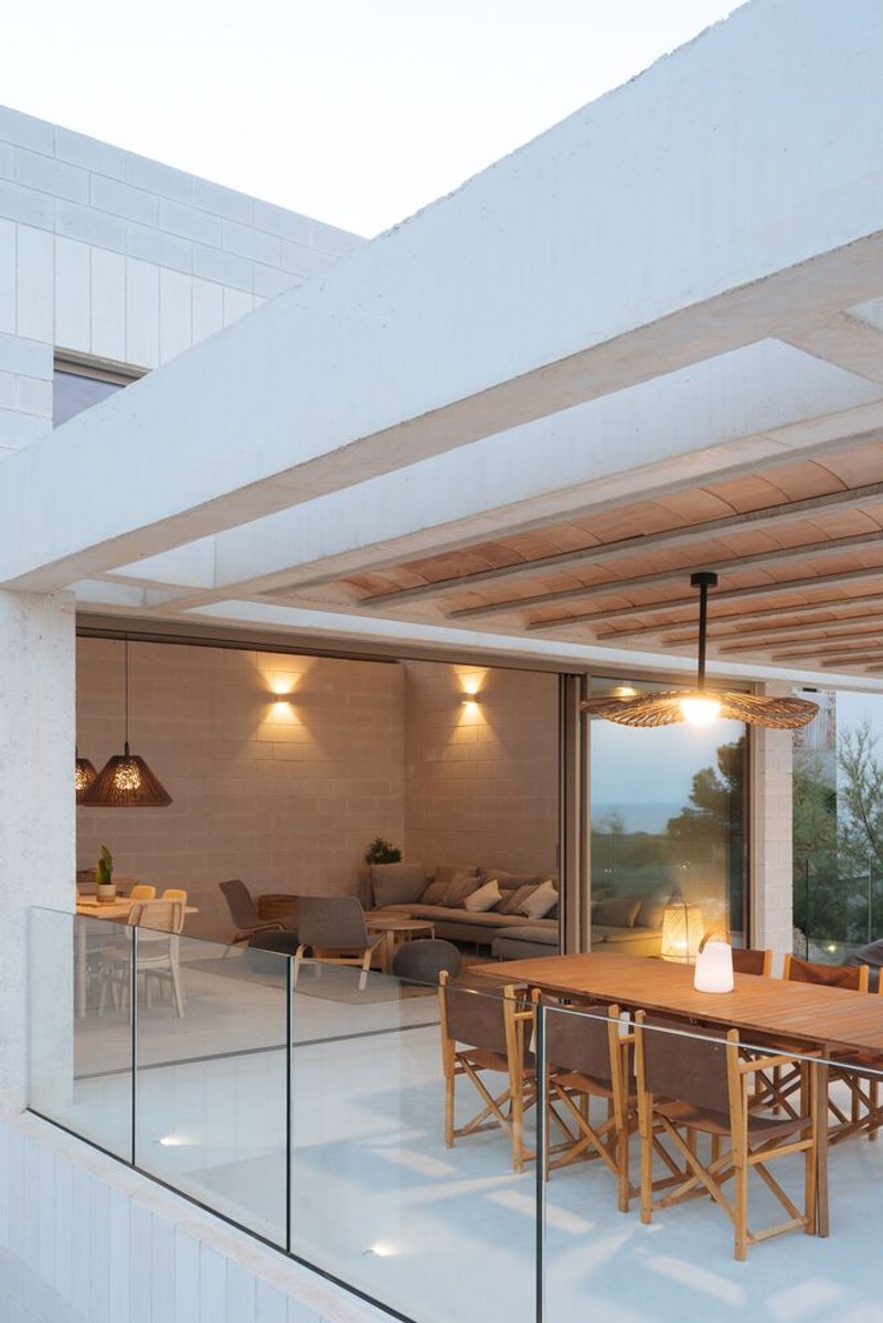 The house features numerous sheltered and sunny outdoor spaces, which encourage interaction with the environment. These areas are strategically designed to shield the interiors from direct sunlight while promoting an indoor-outdoor living ethos that is pivotal in modern sustainable architecture in Spain.
