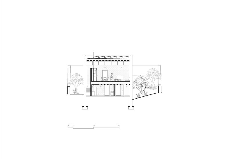 Further embedding its sustainable agenda, the Stepped House incorporates features like ceiling fans, cross-ventilation, and photovoltaic panels on the roof. These elements are integral to the home’s energy efficiency, reducing the carbon footprint and operational costs.
