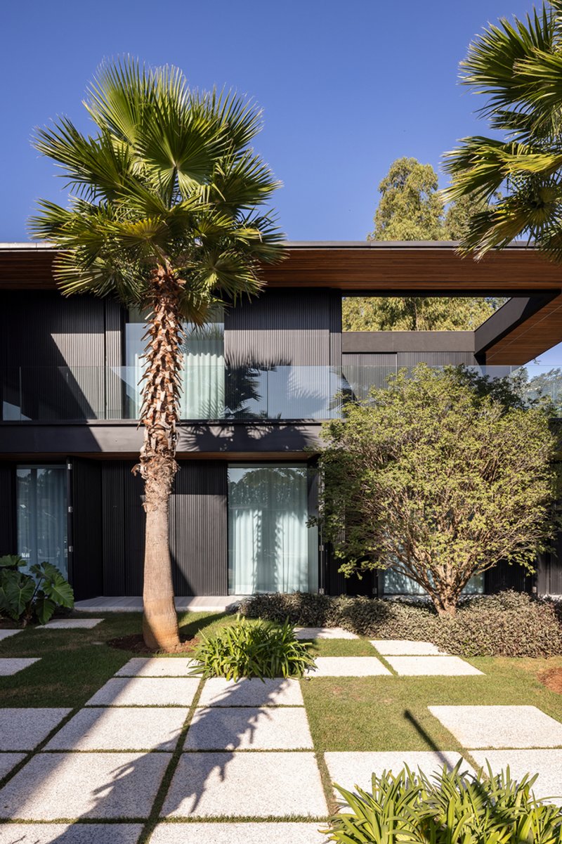 FD Residence, designed by Padovani Arquitetos, is a stunning modern vacation home located in São Paulo, Brazil. Positioned below street level, the house integrates seamlessly with its natural surroundings, offering a tranquil escape with panoramic views. Its L-shaped layout and steel structure create an open and fluid design, emphasizing both functionality and aesthetics. The combination of wood slats, dark tones, and concrete elements results in a sophisticated facade that harmonizes with the landscape while maintaining an elegant, contemporary appeal.