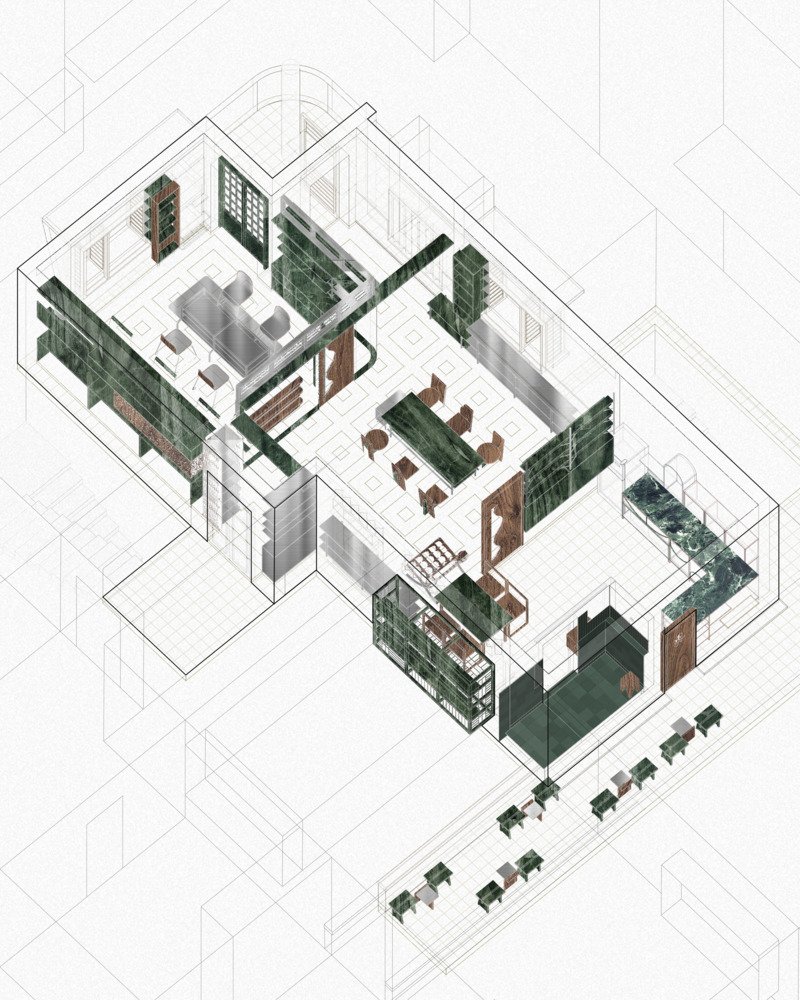 Choosing the right materials for this renovation was a crucial task. The architects researched various options to find those that would complement the existing features of the space. The combination of green-core MDF, raw steel, and teak wood brought a rustic yet contemporary feel to the interior. Old walls were carefully sanded, exposing the marks of time, while the preserved wall panels and original tile flooring acted as a nod to the past.