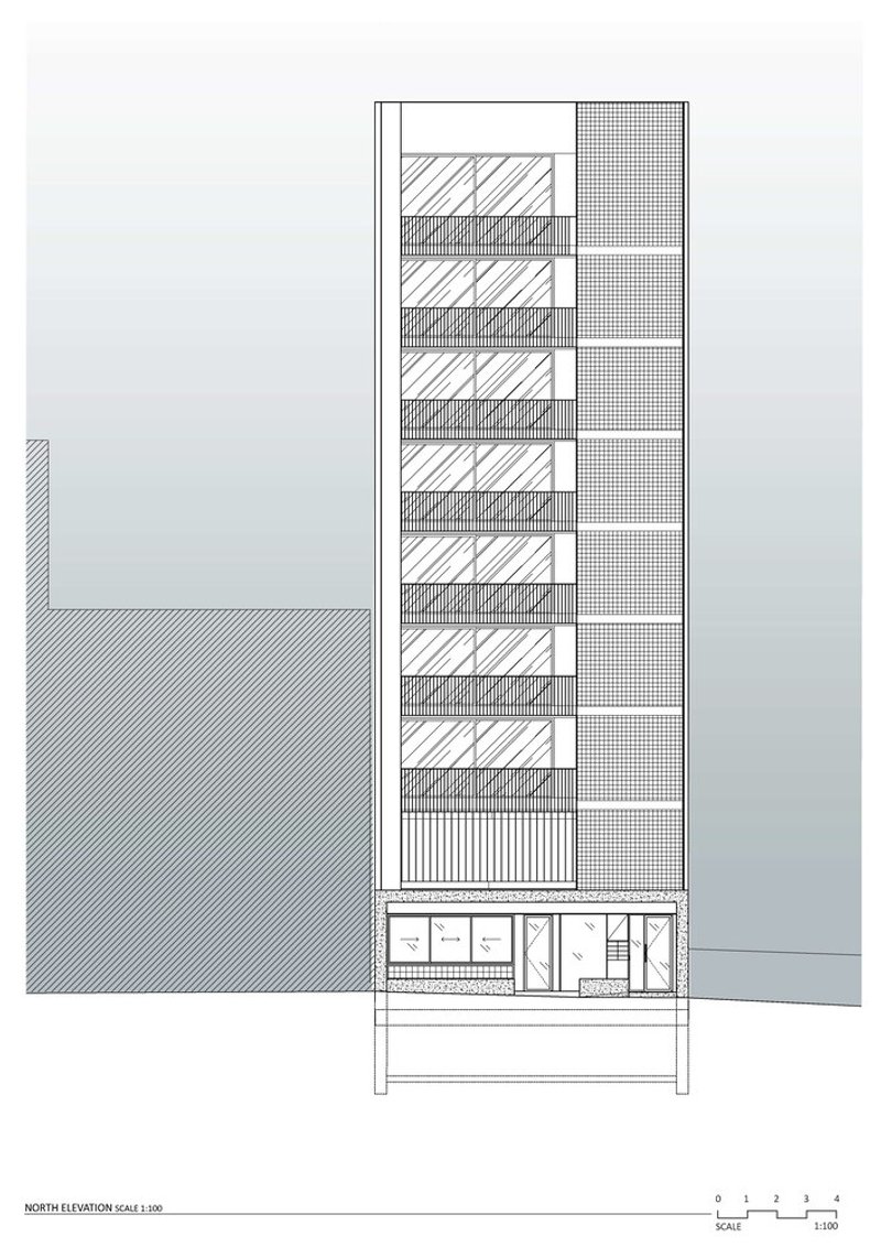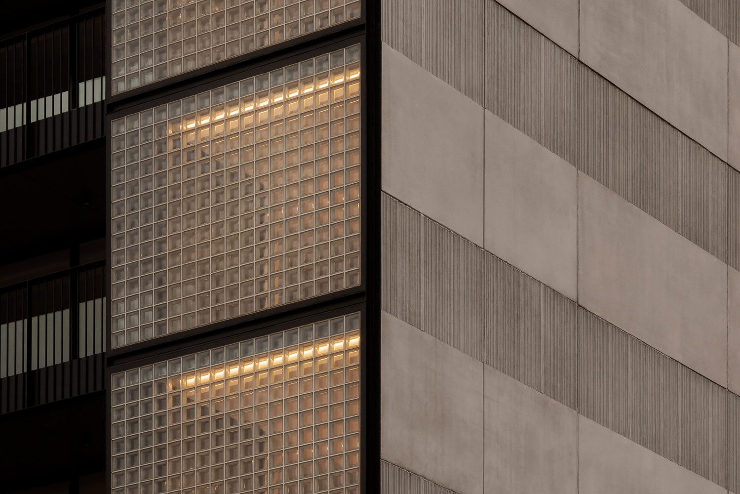Facing significant regulatory and spatial constraints, including fire compliance, acoustic control, and access to daylight, the architectural response was the creation of a slender mini-tower—where each apartment occupies an entire floor. The defining characteristic of the project lies in its use of translucent glass block facades, which satisfy both fire and equitable daylight requirements while establishing a glowing lantern-like presence in the streetscape. This approach not only ensures resident privacy and safety but also contributes to the building’s poetic relationship with the surrounding public realm.