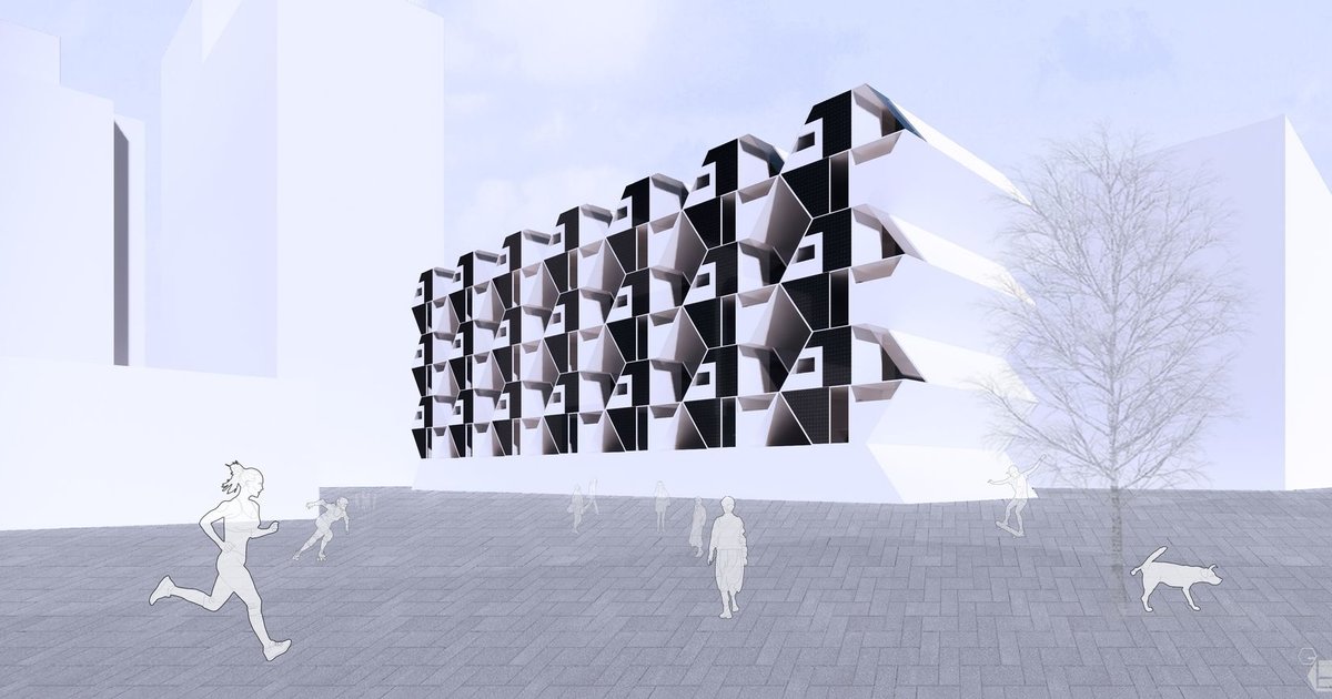 HAH reimagines the mid-rise urban residential block as a modular, kinetic system. The design consists of 84 trapezoidal housing cells that attach to a structural grid and are capable of sliding in and outsimilar to drawers in a dresser. This movement allows for cantilevering elements, dynamic spatial reconfigurations, and maximum daylight exposure. The result is a living building that evolves with its inhabitants and their needs.